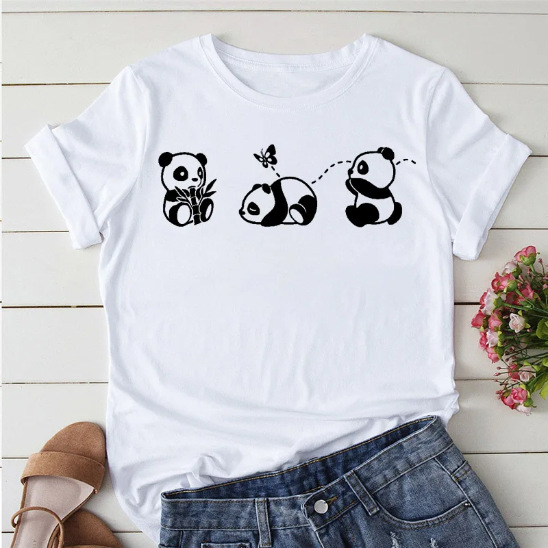 Летние футболки, женская футболка с мультяшным принтом, Милая женская футболка с принтом панды и йоги, футболка с коротким рукавом, Женские повседневные топы, футболка