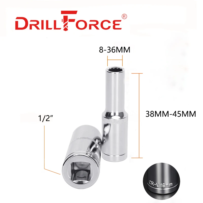 Drillforce 8-36 мм электрические гаечные рукава, изготовленные из 50BV30 CR-V, термическая обработка поверхности, водонепроницаемый и устойчивый к ржавчине и элегантный. 8-32 мм характеристики и модели завершены, с коротким рукавом одна покупка. Эффективная конструкция запасных частей, достаточно.