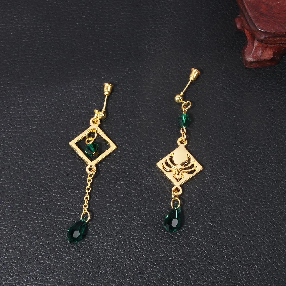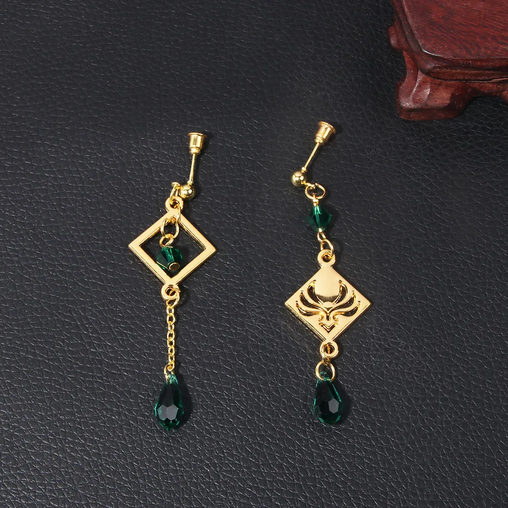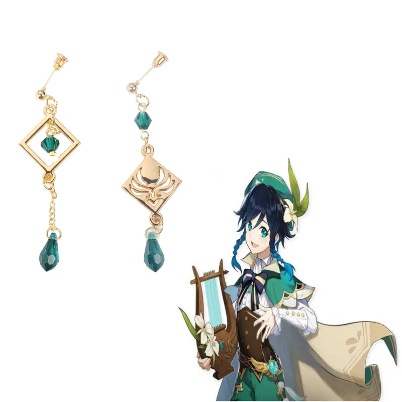 Серьги Genshin Impact Venti, ветровой элемент, подвеска из зеленого кристалла и камня, висячие серьги для женщин и девушек, ювелирные изделия в подарок