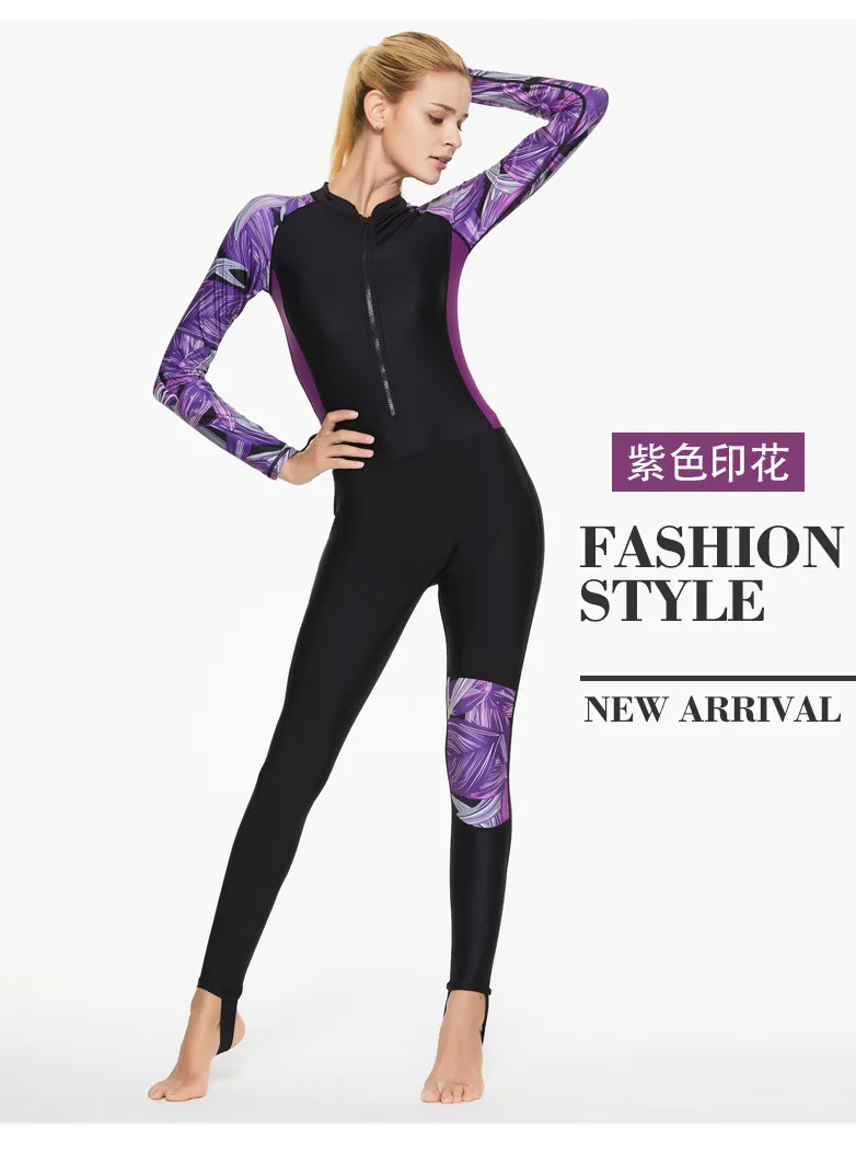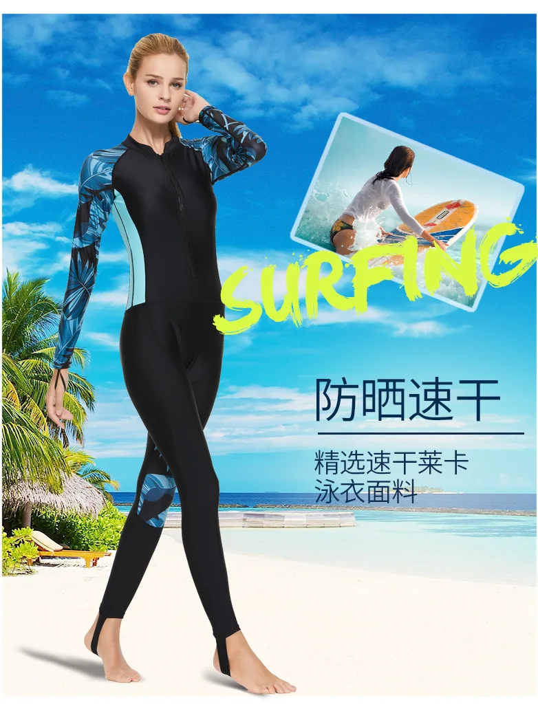 Цельный полноразмерный женский купальник из лайкры, с длинным рукавом