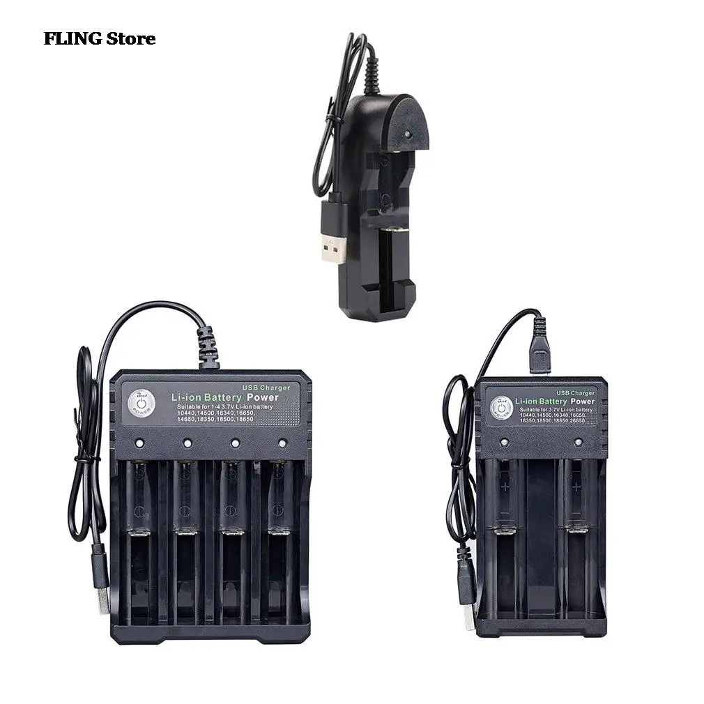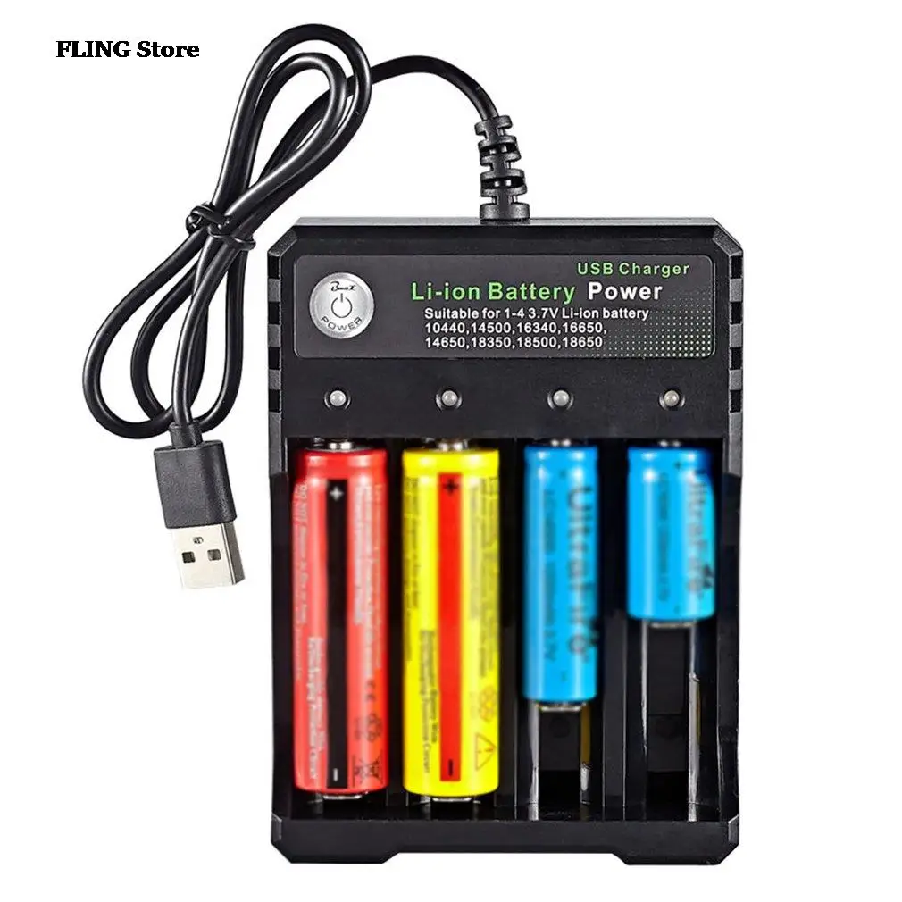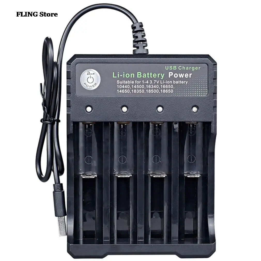 Зарядное устройство для батарей, черное, на 4 батареи, 110220 В переменного тока, с USB, для батарей 18650, литиевых, 3,7 В
