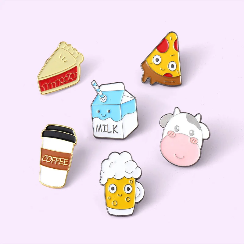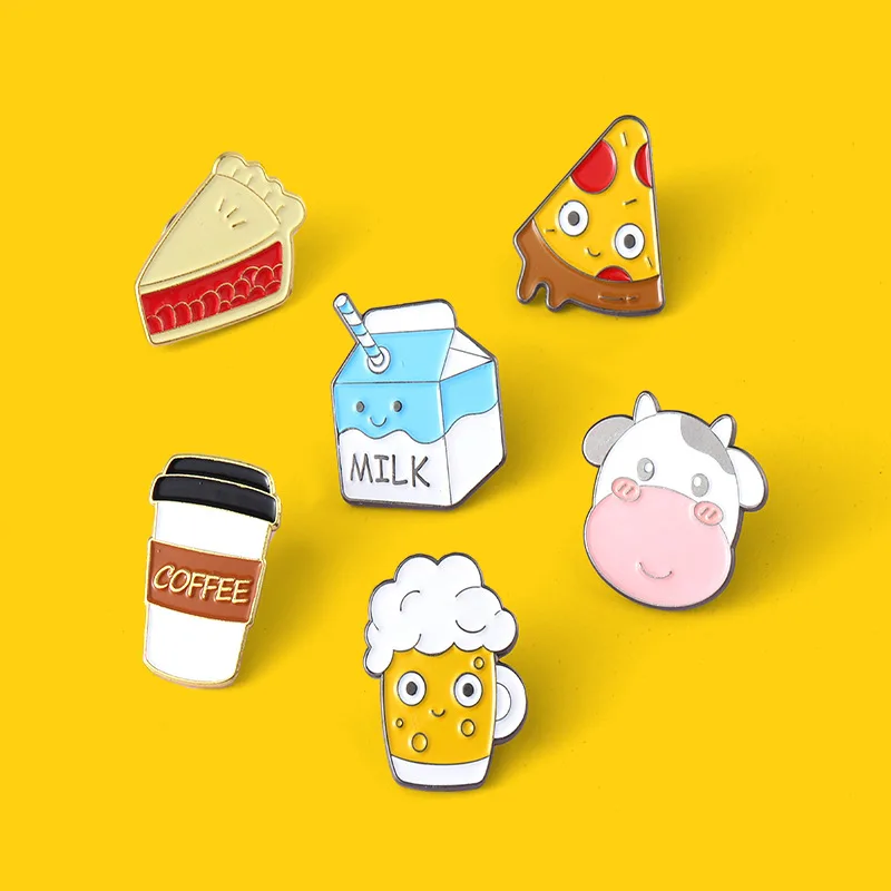 Забавная модная эмалированная брошь в форме кофейной чашки, детский металлический значок для пиццы, молока, пива, бутылки, одежда в стиле панк, булавка для лацкана, ювелирные изделия, подарок для друзей