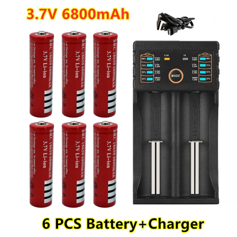 100% оригинальный 18650 аккумулятор 3,7 В 6800 мАч литий-ионный аккумулятор для светодиодной лампы литий-ионный аккумулятор + зарядное устройство