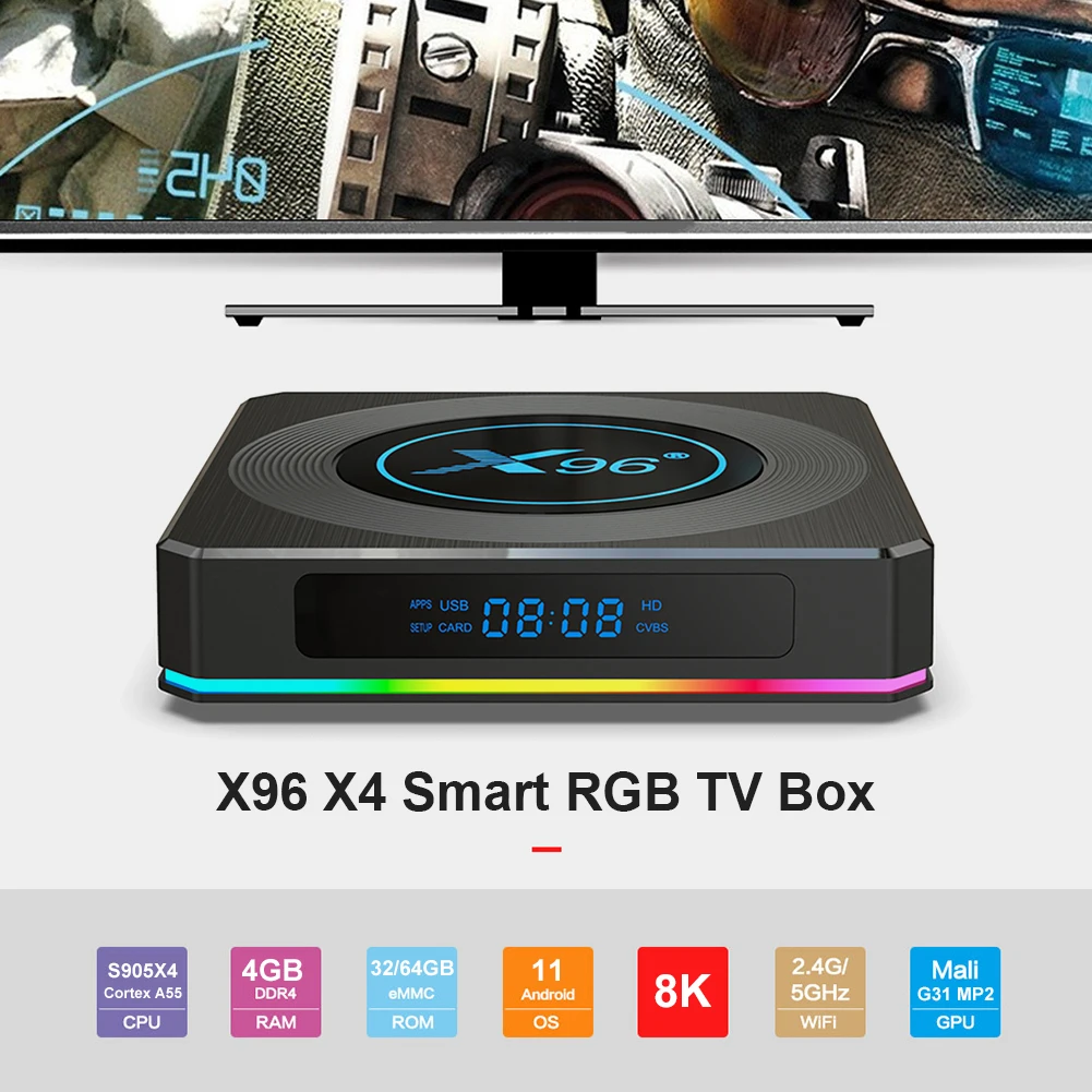 X96 X4 S905X4 умный RGB светильник ТВ-приставка Android 11 двухдиапазонный 2,4G/5GHz WiFi Bluetooth-совместимый 8K медиаплеер телеприставка