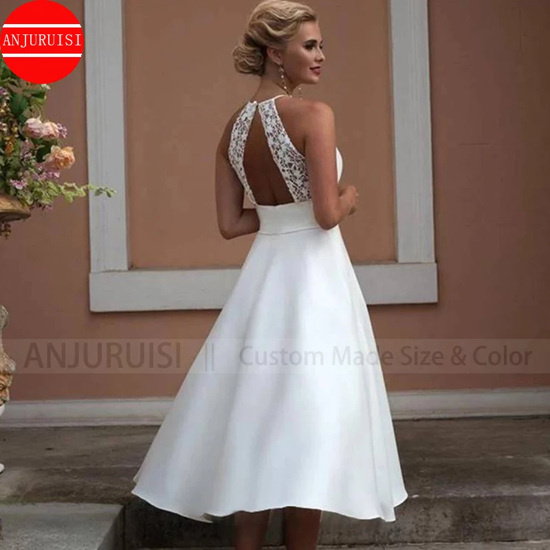 Женское свадебное платье до середины икры, короткое Кружевное плать...