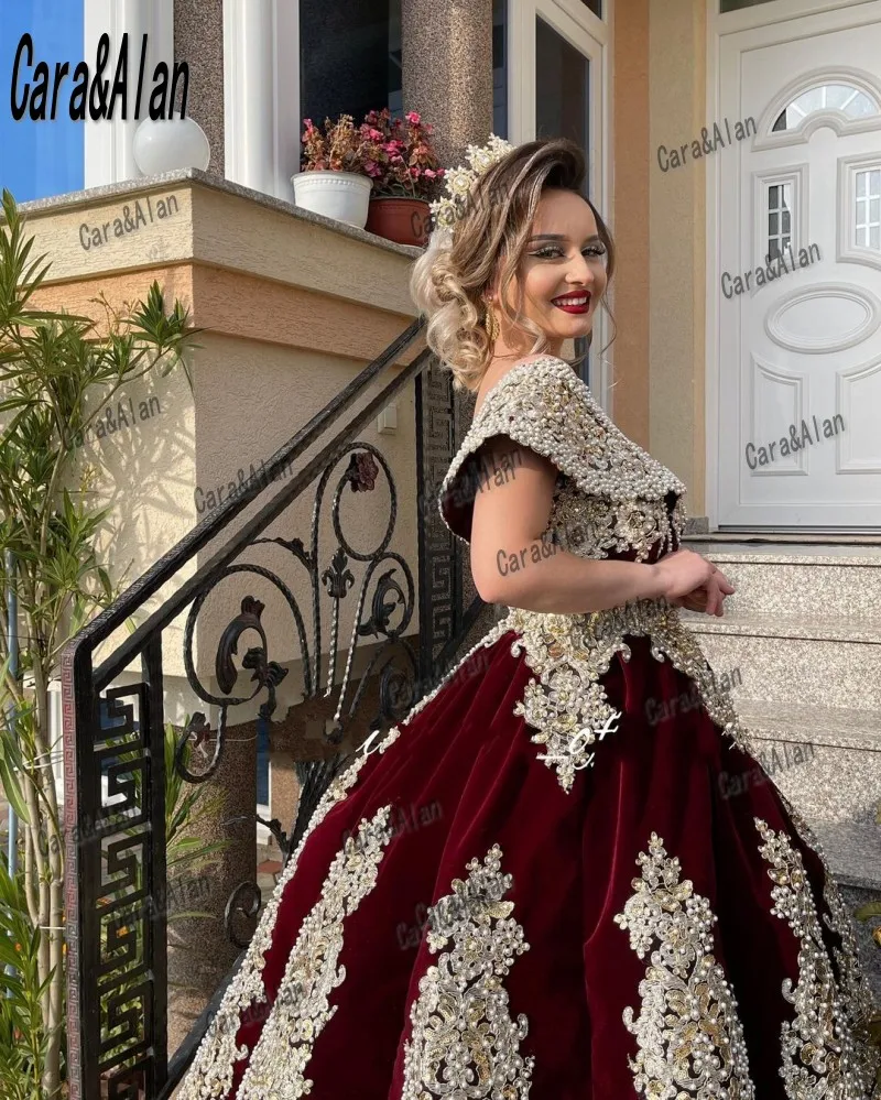 Роскошное бордовое бальное платье, пышное платье, украшенное бисеро...