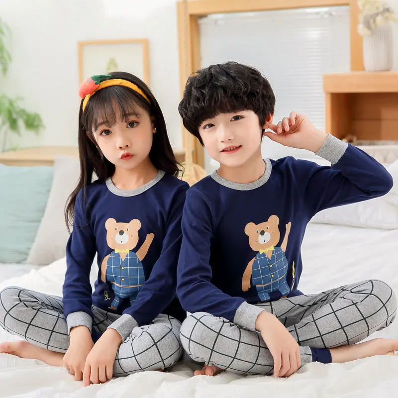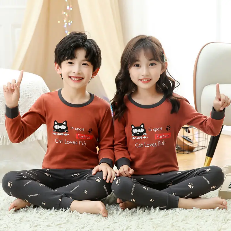 2021 зимняя Пижама для мальчиков и девочек, одежда с длинным рукавом, детская одежда, одежда для сна, хлопковые Пижамные комплекты для детей 4, 6, 8, 10, 12 лет