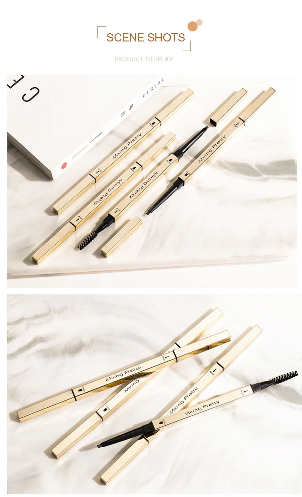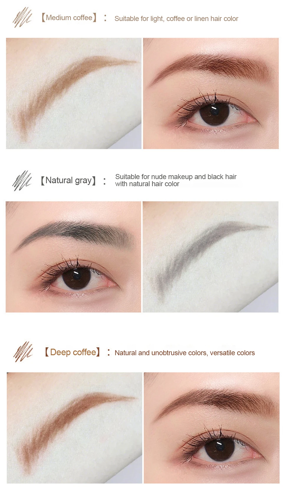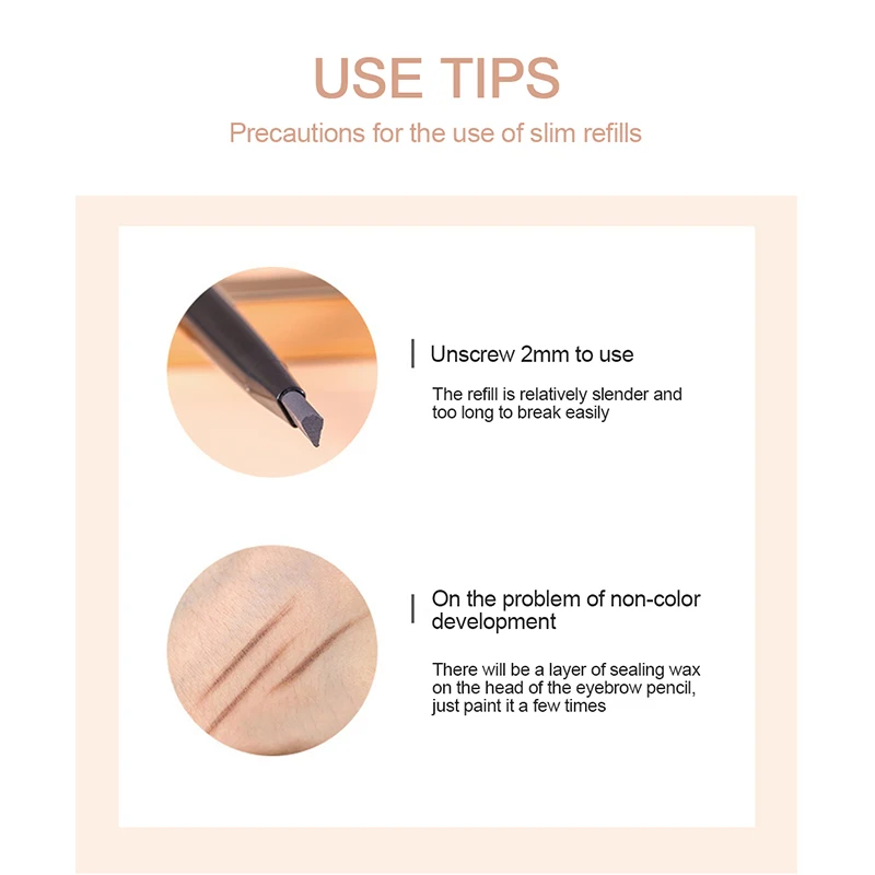 Срок годности: 3 годаПосылка: 1 шт. ручка для бровейОсобенности:1. Карандаш для бровей, макияж бровей с двойными концами, точные контуры, легко оттеняет, равномерно заполняет брови. Используя тонкую точку карандаша с треугольными наконечниками, создайте штрихи, надавливая на светильник и проводя в направлении роста волос.2. Вращение на 360 градусов дизайн: Выдвижной карандаш для бровей тело принимает Водостойкий карандаш пополнения, идет гладко, цвет может оставаться в течение всего дня. Для предотвращения пота, дождя от размазывания.3. Дизайн с двумя головками: используйте кисть на другом конце ручки, чтобы помочь вам разобраться с неправильными бровями и сделать его более легким для цвета. Очень легко очертить брови естественным образом и легко носить с собой.4. Простой в использовании-новички и профессионалы любят наш карандаш для бровей, потому что использовать его так легко рисовать и заполнять.