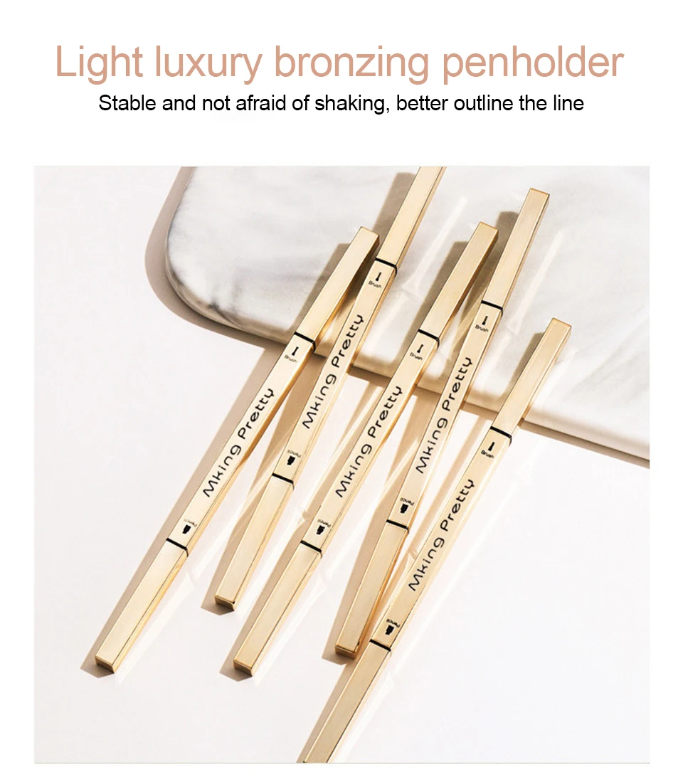 5 цветов, маленькая золотая косметика для бровей, карандаш, водостойкая двойная татуировка для бровей, долговечный макияж, карандаш для бровейОписание:100% новый и высокое качествоНазвание: ручка для бровейУзор: маленькие золотые полоски5 разных цветов: темно-коричневый/черный/светильник коричневый/серый