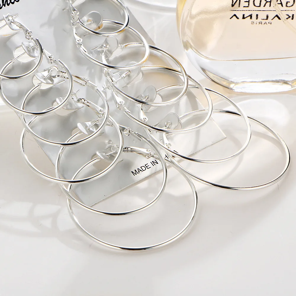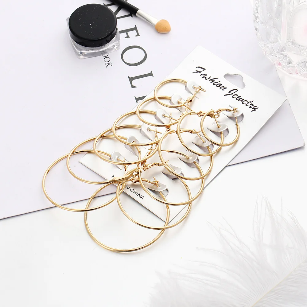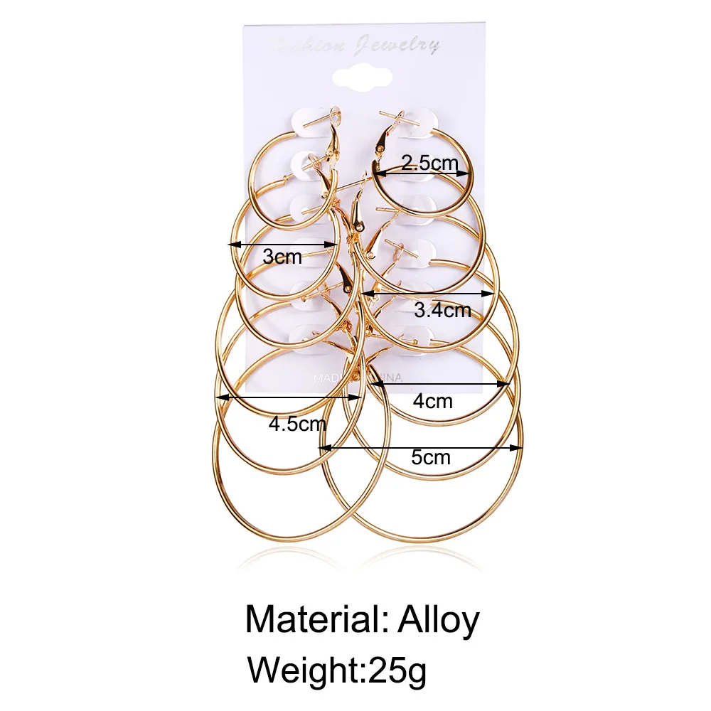 6 пар серьги-кольца в стиле панк набор большие круглые серьги ювели...