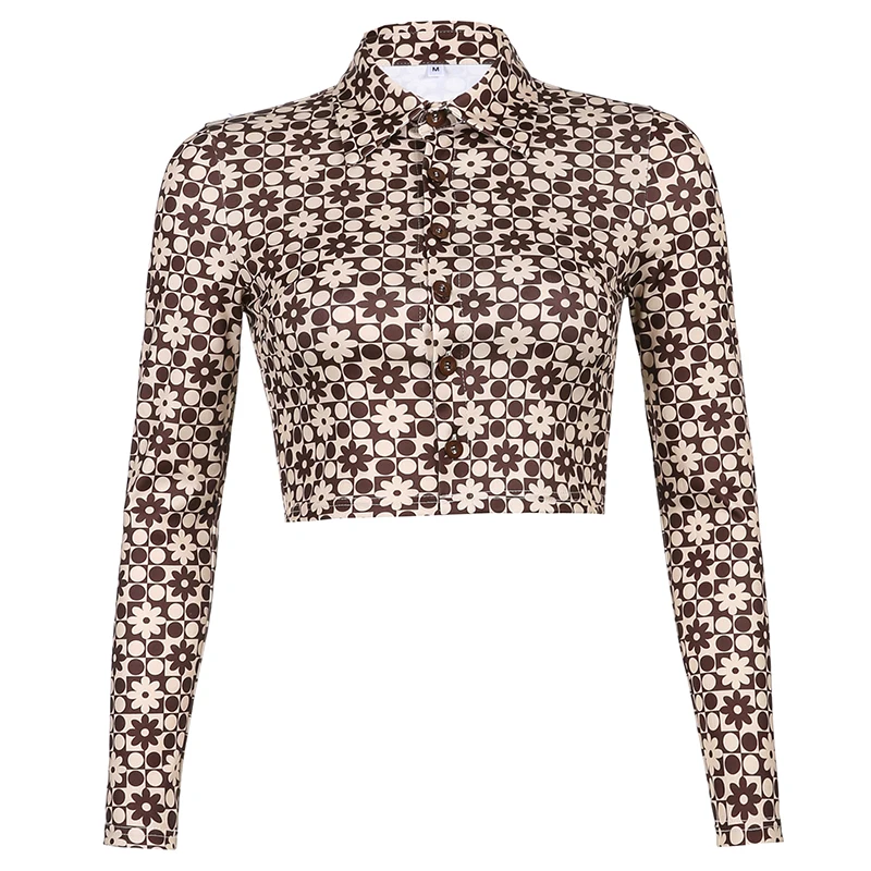 Винтаж 90s Цветочный принт Коричневые рубашки Y2K уличная одежда с ...