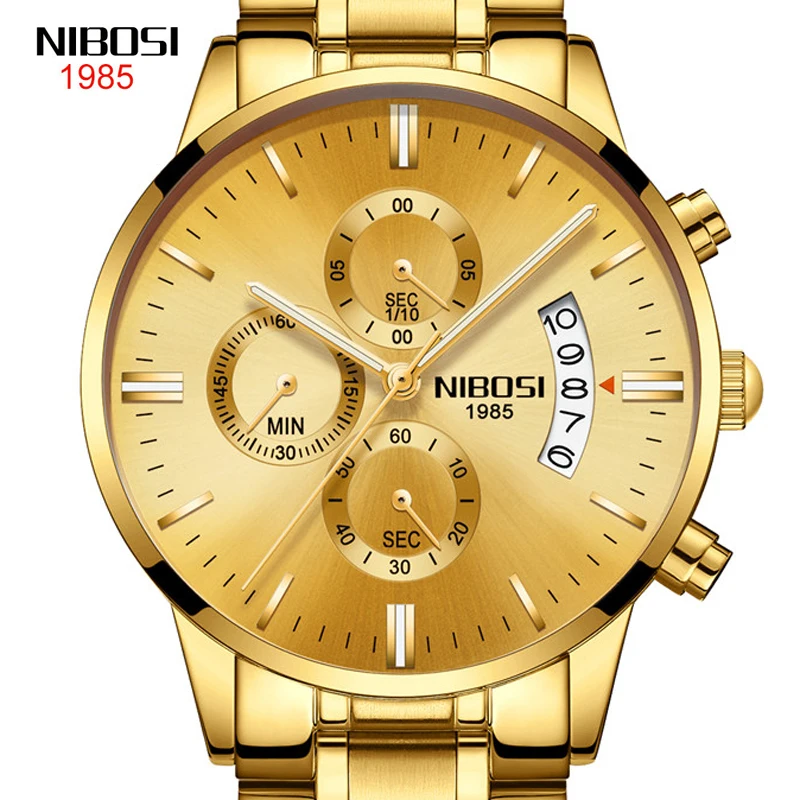 NIBOSI модные часы из нержавеющей стали, мужские водонепроницаемые кварцевые часы с хронографом, мужские роскошные брендовые золотые наручные часы для мужчин 2309