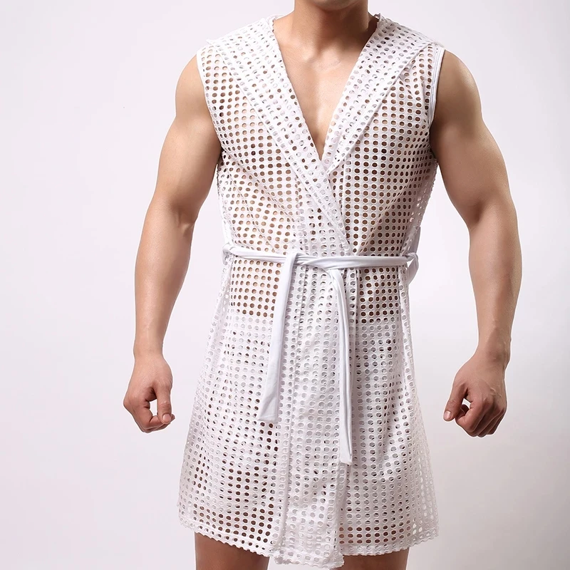 Мужские сетчатые халаты, брендовый пикантный мужской халат, одежда ...