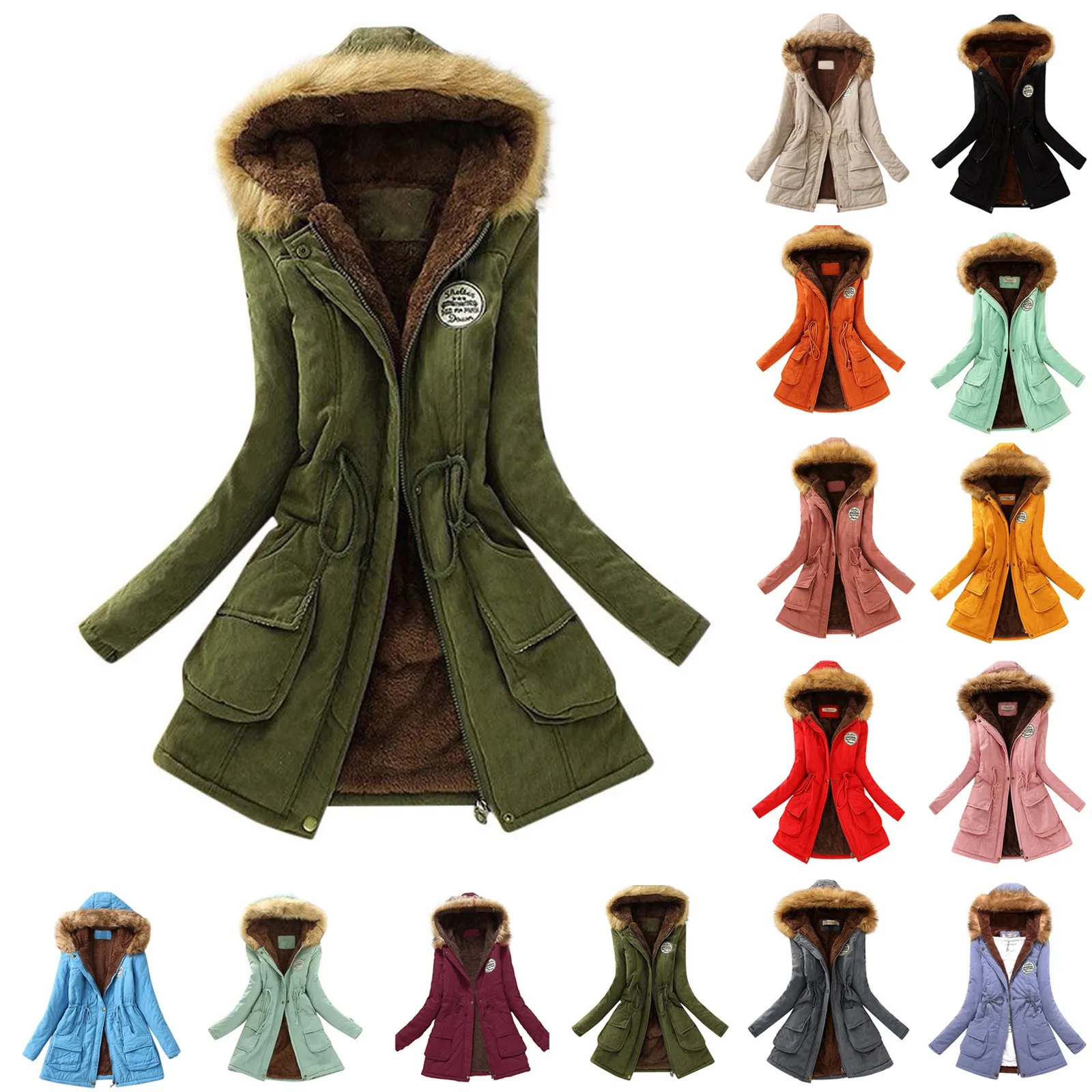 ❤Женские теплые пальто с капюшоном, парки, сохраняют тепло. Классическая зимняя куртка-парка, Женская куртка с капюшоном, женская верхняя одежда. Классические пальто; Цвета: зеленый, хаки, черный, красный и т. Д.
