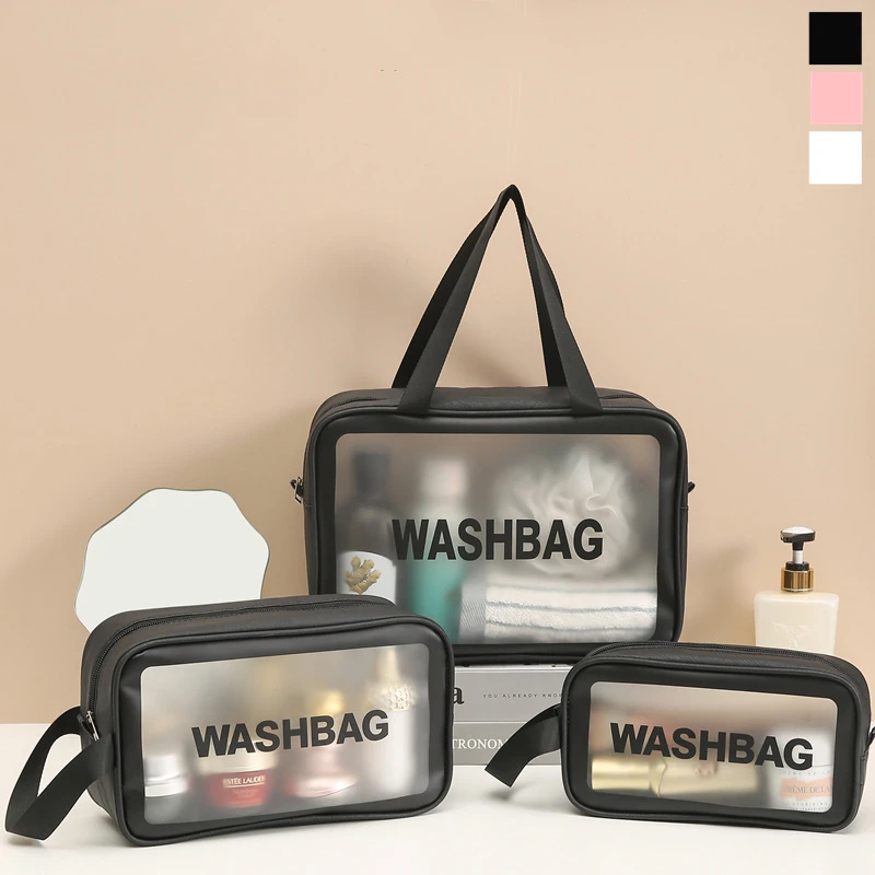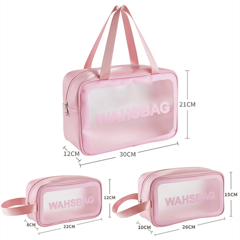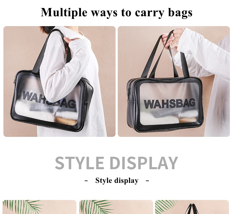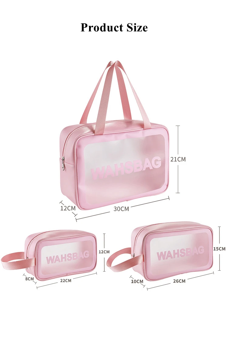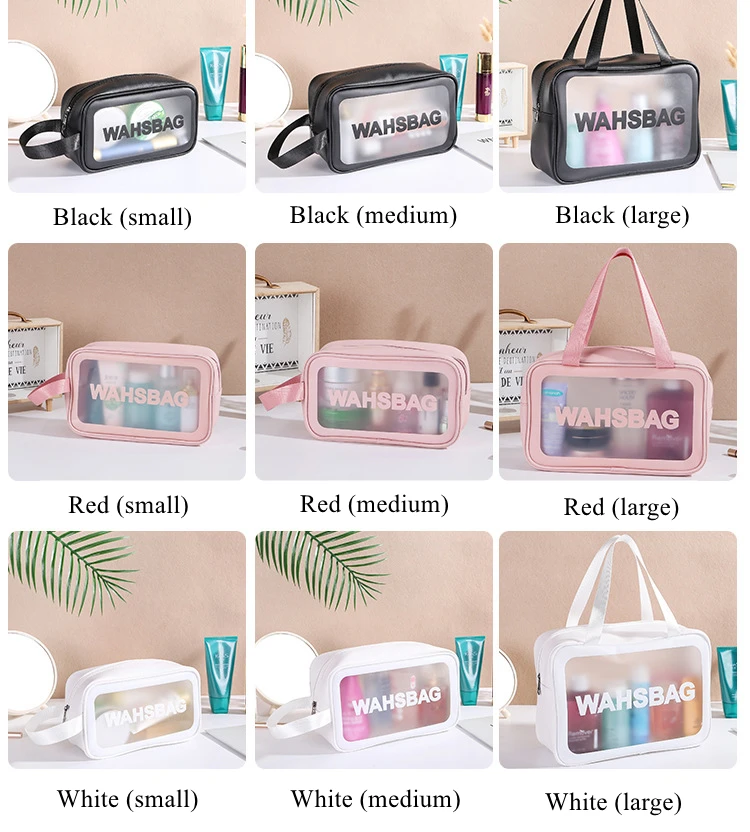 Описание товара:Название: прозрачная портативная косметичкаМатериал: из искусственной кожи + Матовый ПВХРазмер: Большой: 30*12*21 смСредний: 26*10*15 смТруба: 22*8*12 см