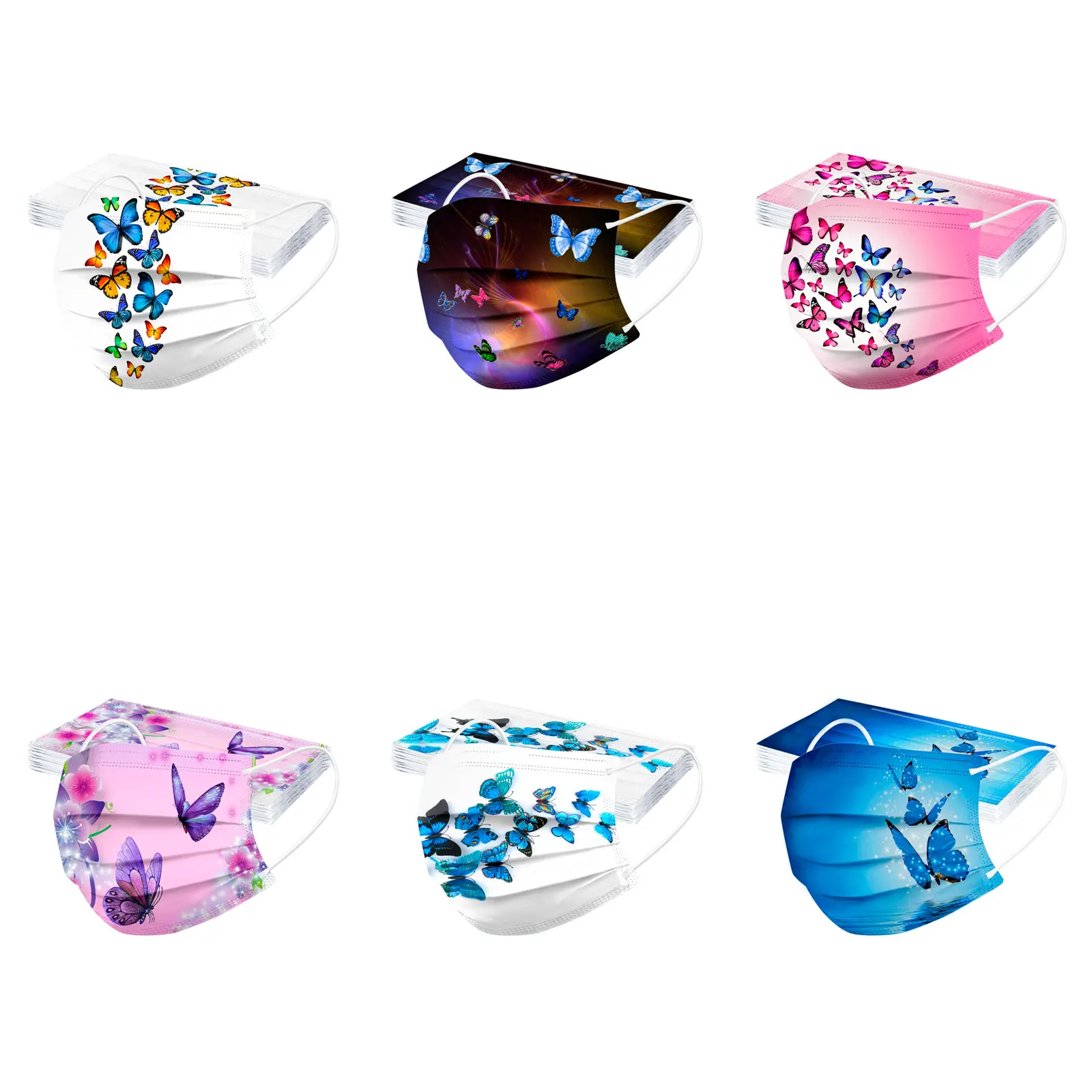 10 шт. маска с принтом бабочки для взрослых, 3-слойная Нетканая маска для лица, личная медицинская маска для рта, маски, ежедневная маска для ухода