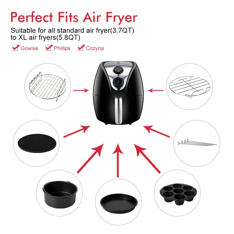 Аксессуары для фритюрницы 7 дюймов для Gowise Phillips Cozyna и Secura, набор из 8, подходит для всех фритюрниц с электрической фритюрницей 5.3QT до QT
