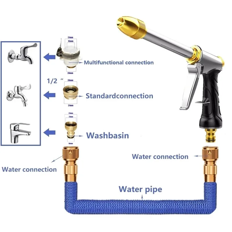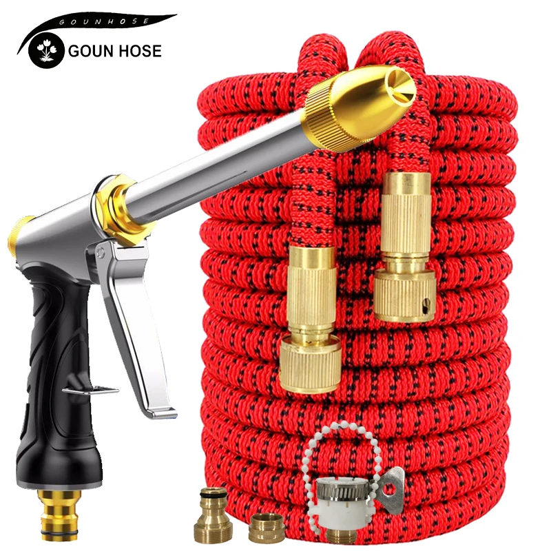 Большой садовый шланг, расширяющийся гибкий шланг, используемый для мойки автомобилей высокого давления, волшебный шланг, металлический пистолет-распылитель, для полива сада на открытом воздухе