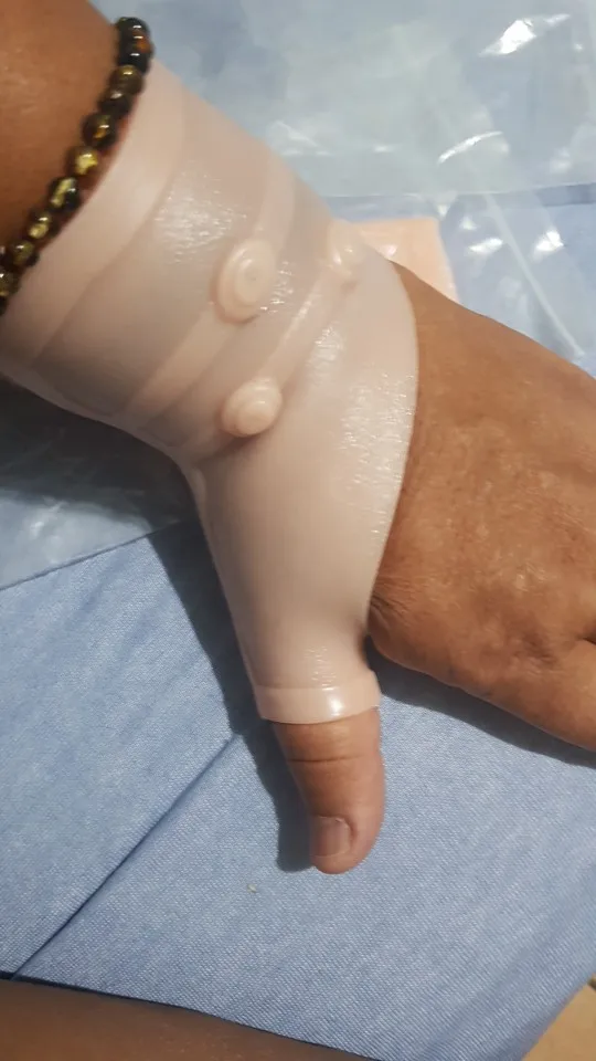 Вначале показалось что маленькие и на руку не налезут, но аккуратно натянула на руку. Немного сдавливает основание большого пальца, еще не знаю насколько поможет избавиться от боли после перелома, который спровоцировал возникновение синдрома запястного канала. К качеству претензий нет.