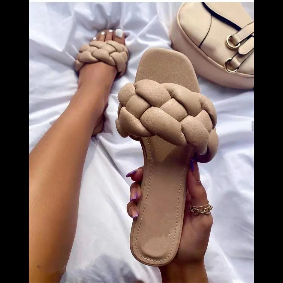 Тапки женские плетеные на плоской подошве, роскошные элегантные шле...