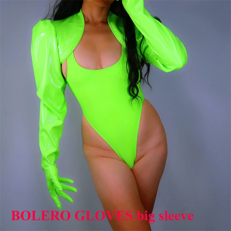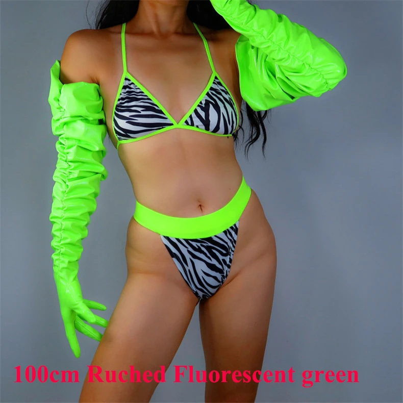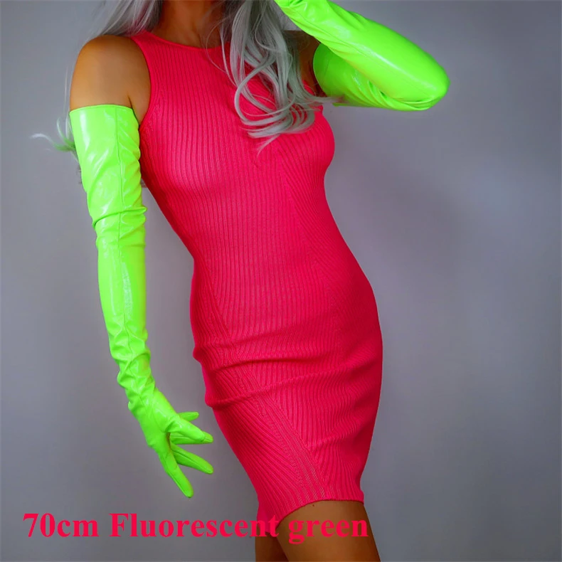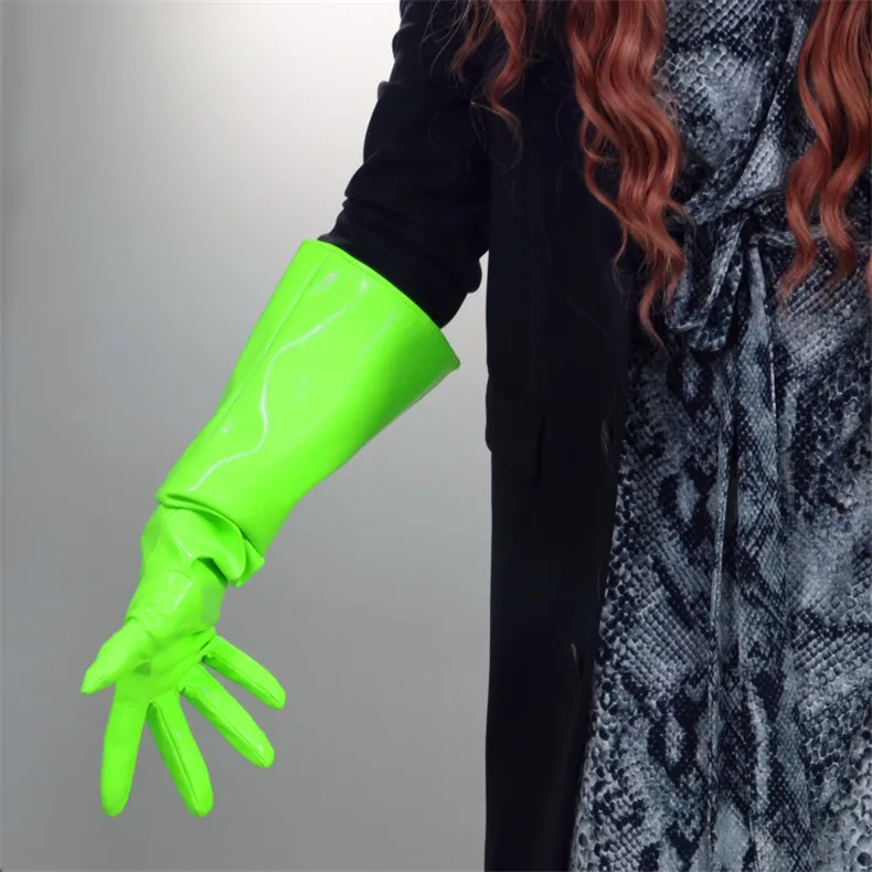 Латексные женские перчатки сверхдлинные 70 см, искусственная кожа, флуоресцентный зеленый был тонкий, лакированная кожа, женские перчатки WPU348