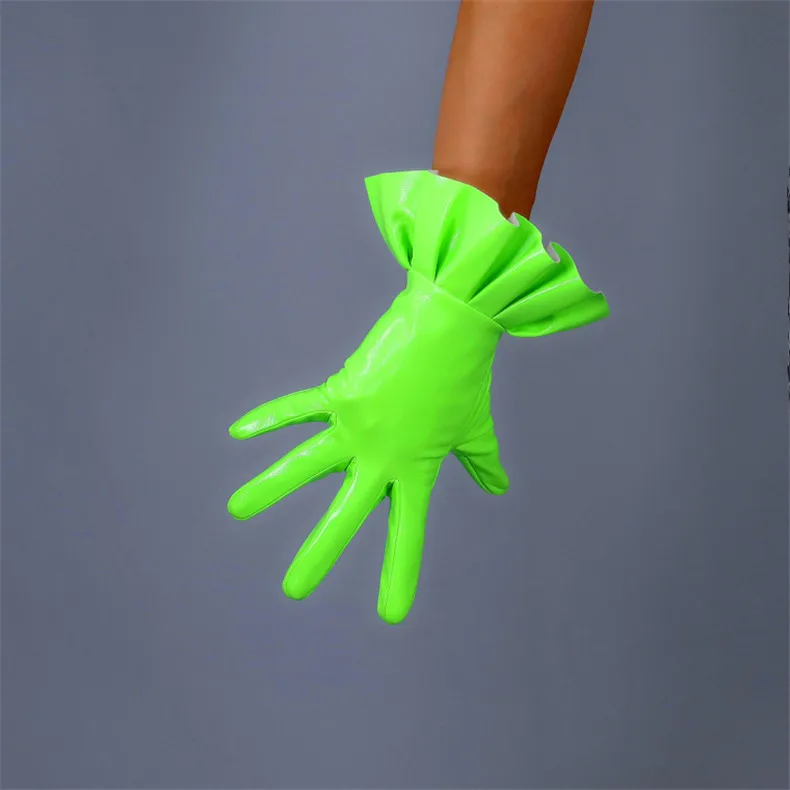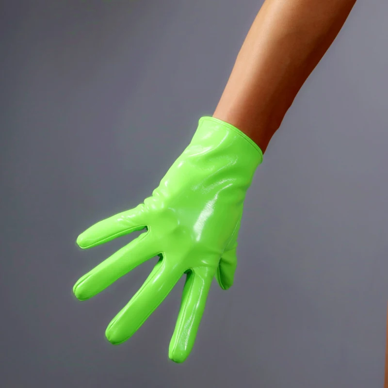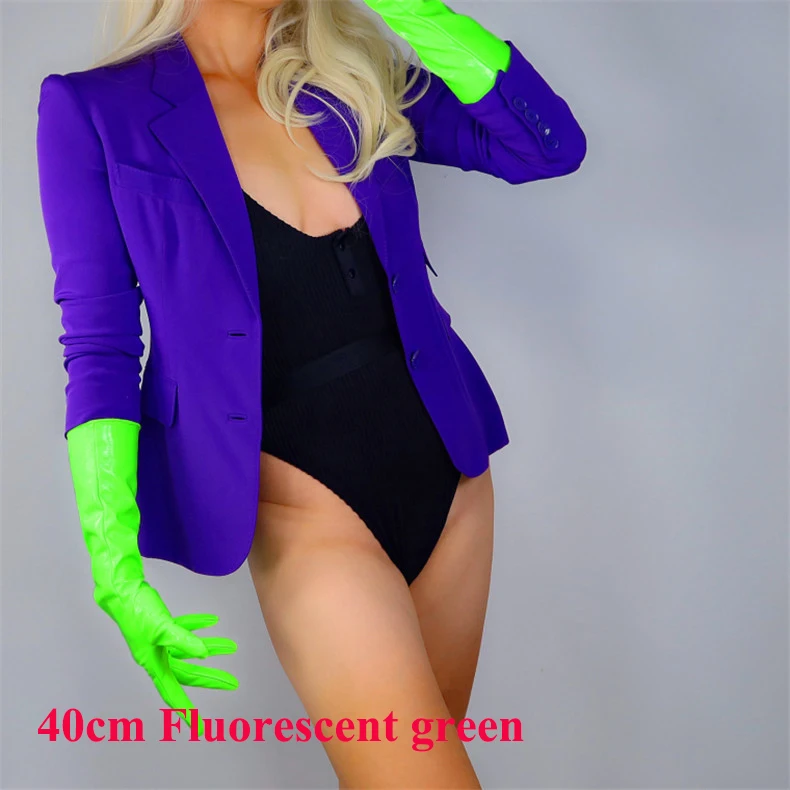 Латексные перчатки женские удлиненные 70 см искусственная кожа флуоресцентный зеленый был тонкий лакированная кожа женские перчатки WPU348