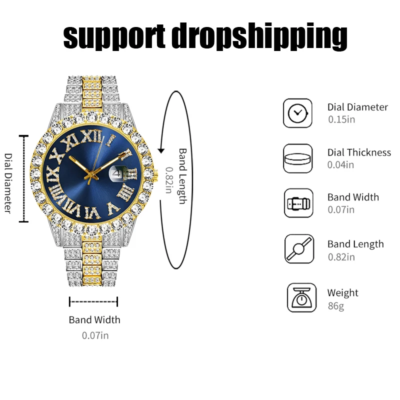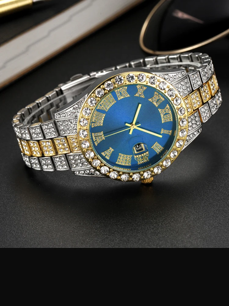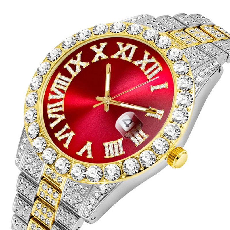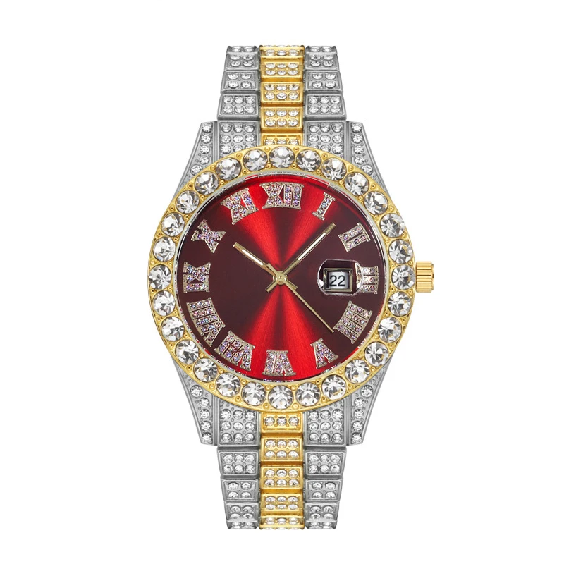 Мужские кварцевые наручные часы, водонепроницаемые, с фианитом