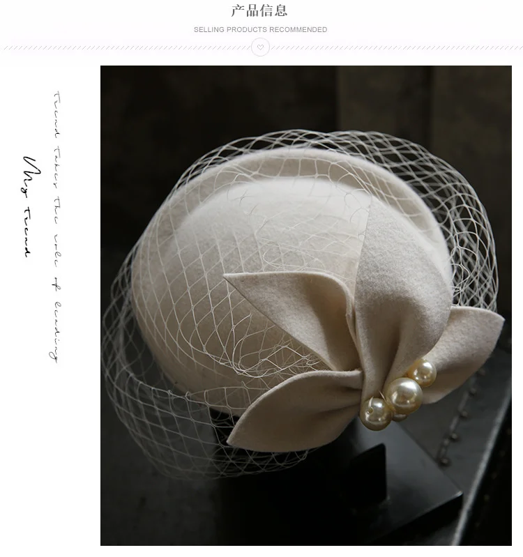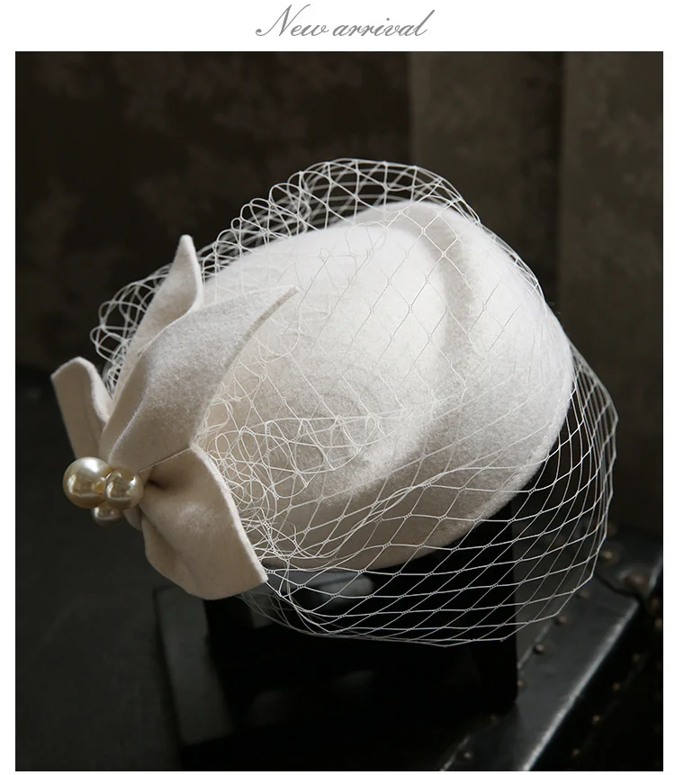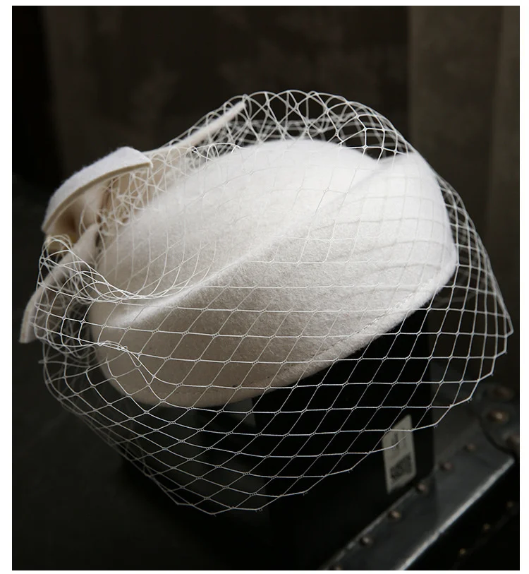Фетровая Вуалетка из чистой шерсти, свадебная шапка Таблетка, шапка для женщин, Коктейльная вечеринка, винтажный женский зимний однотонный берет, шапка для хозяйки