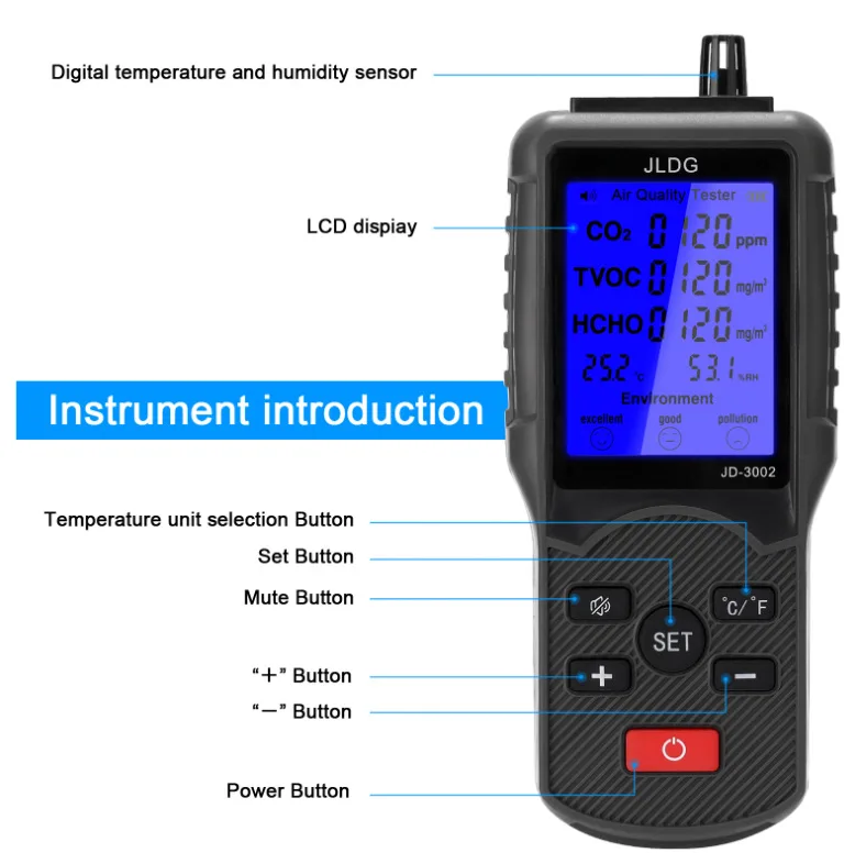 Оснащен функцией оценки качества окружающей среды, он будет отображать соответствующий уровень в соответствии с значением измерения.
