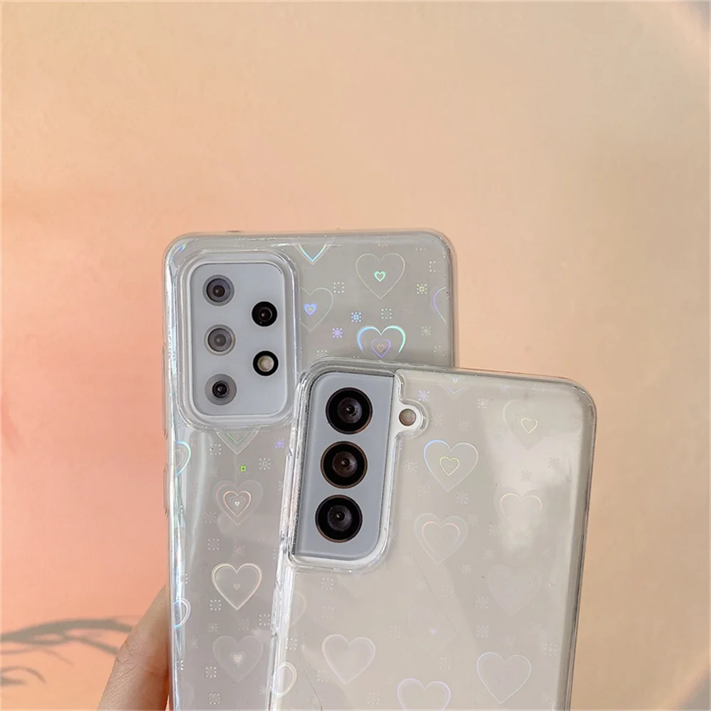 Голографический чехол с любовным сердцем для Samsung Galaxy S21 S20 FE S22 Plus A52 5G A32 A72 A71 A51 A31 A50 A12 Note 20, сверхпрозрачный чехол