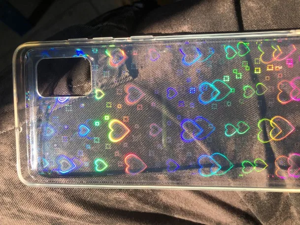Я купил этот трендовый чехол для моей дочери-подростка. Не очень хорошо, но так и было. Это очень мило с волшебными голографическими лазерными сердцами. Она была рада получить его, и я вижу почему! Спасибо!