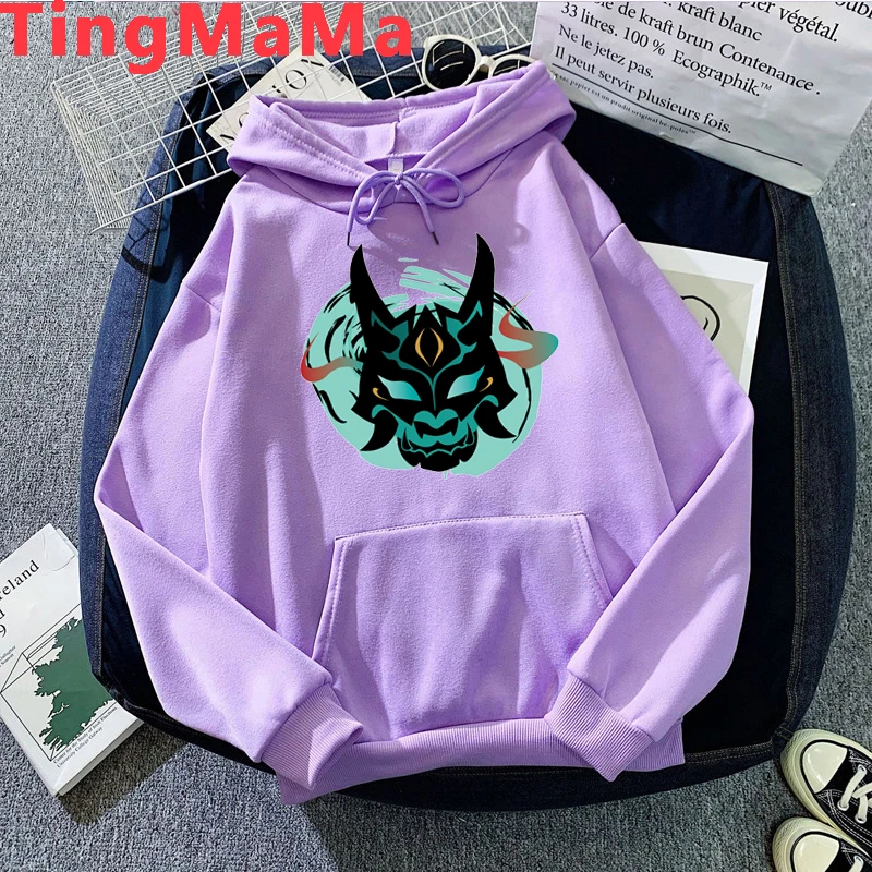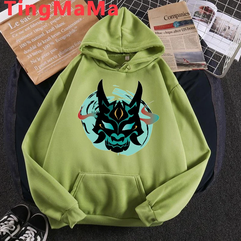 Genshin Impact Xiao маска клыки графическая толстовка мужская каэдехара Kazuha унисекс Хип-Хоп Уличная одежда с длинным рукавом карманом в стиле граффити