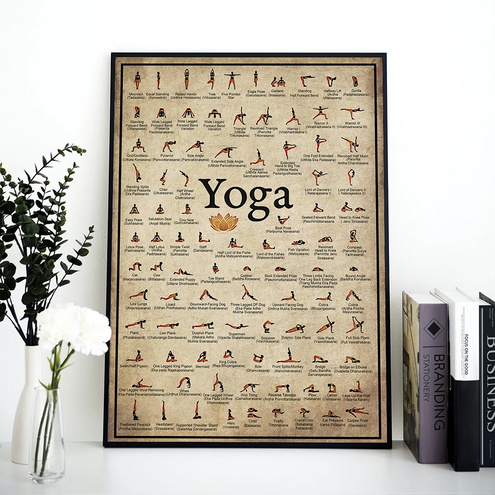 Домашние упражнения тренажерный зал Йога Ashtanga Таблица позы здоровье плакат настенное Искусство Холст Живопись Печать для гостиной домашний декор