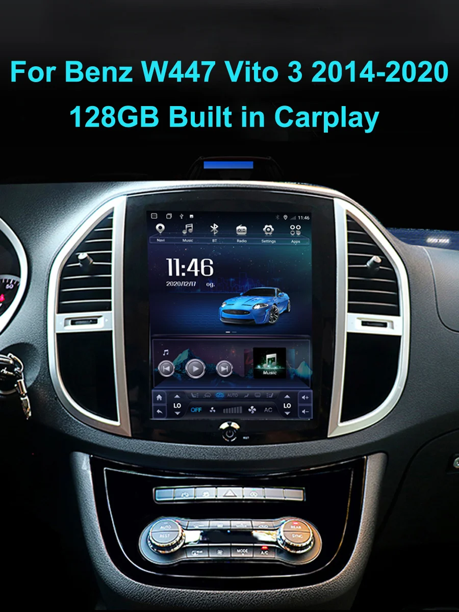 Автомобильный мультимедийный плеер, 8 ГБ + 128 ГБ, GPS для Mercedes Benz W447 Vito 3 119d 2014-2020 tesla style, 12,1 дюймовая навигация, стерео CarPlay