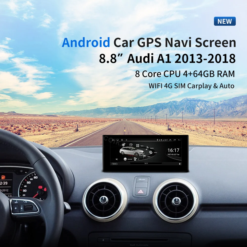 Автомобильная Мультимедийная система, 8 ядер, Android, для Audi A1 13-19, Wi-Fi, SIM, 4 + 64 Гб ОЗУ, BT, IPS, сенсорный экран, GPS навигация, планшет Carplay