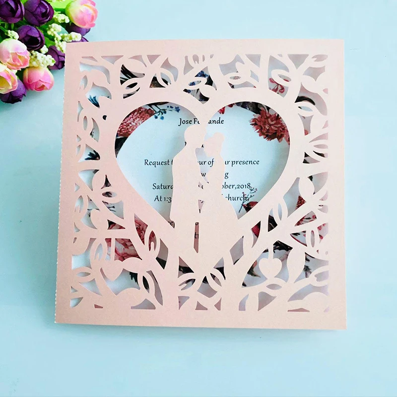 100 шт. квадратные свадебные пригласительные открытки для невесты и жениха синие бордовые золотые сердечки персонализированные Пригласительные открытки товары вечерние Ринок