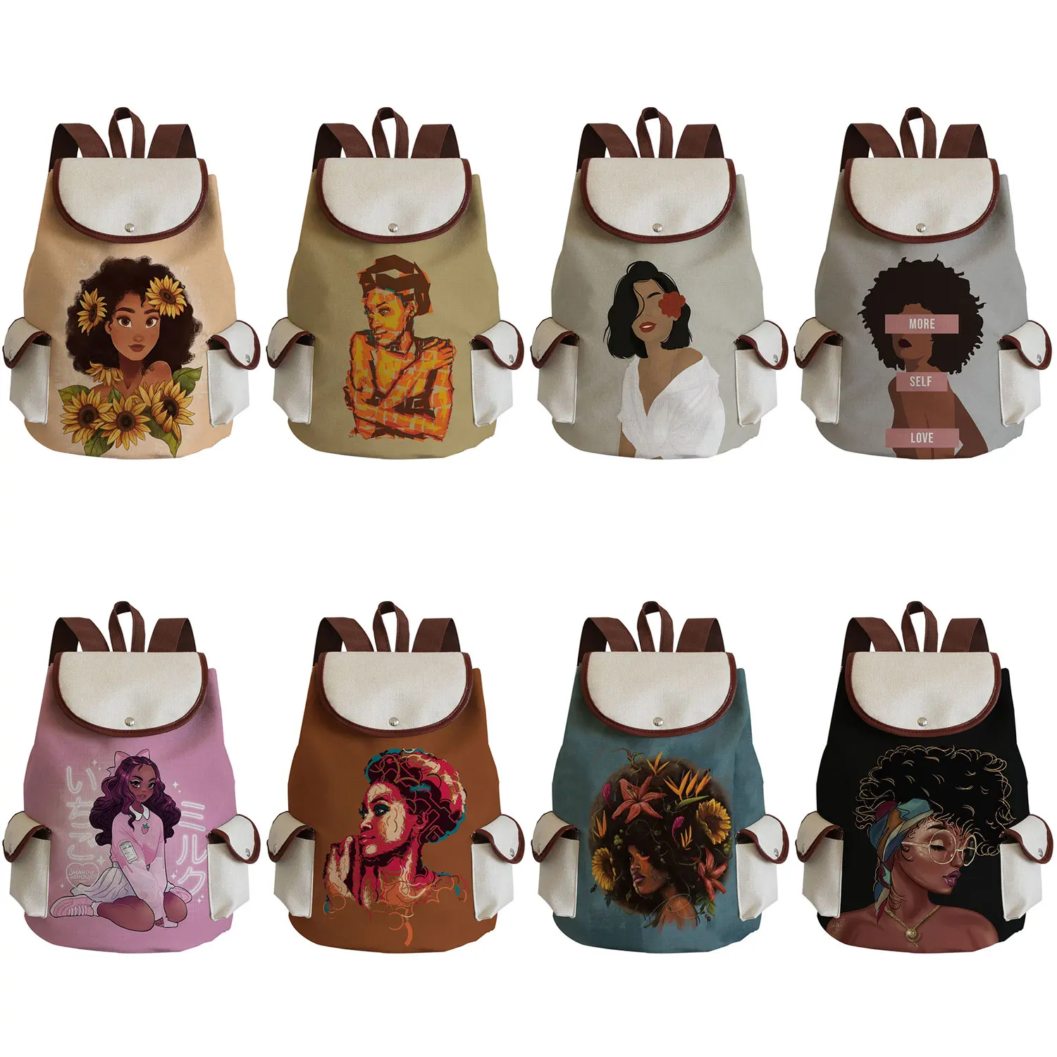 Повседневный льняной рюкзак в консервативном стиле, женский рюкзак, хит продаж, сексуальный черный рюкзак для девочек в африканском стиле, многоразовая сумка с принтом, сумка для книг