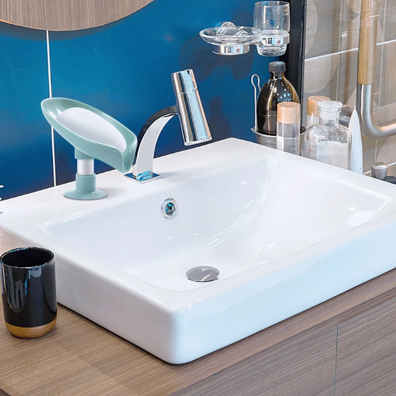 Присоска для мыла для ванной и душа, портативный держатель для мыла в форме листа, пластиковый поднос для губки, аксессуары для кухни и ванной комнаты