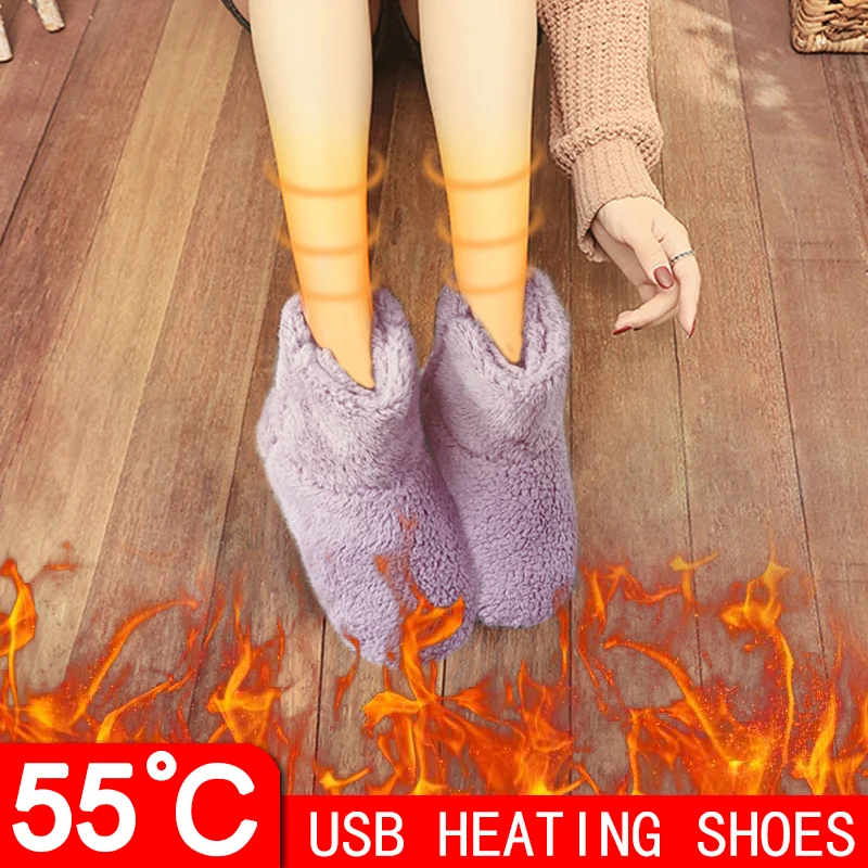 Зимние тапочки с подогревом для ног, плюшевые теплые электрические ...