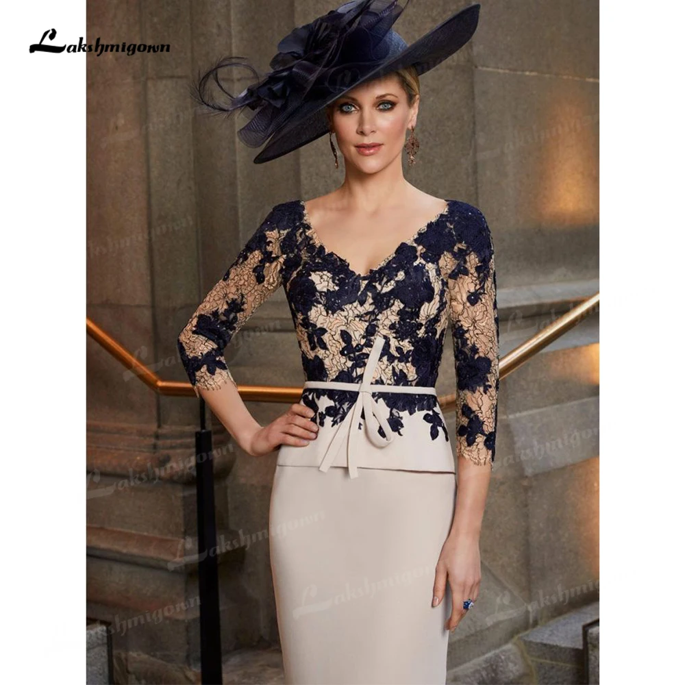 Потрясающие платья для матери невесты, силуэт, длина до колена, рукава 34, элегантное кружеввечерние вечернее платье для свадьбы