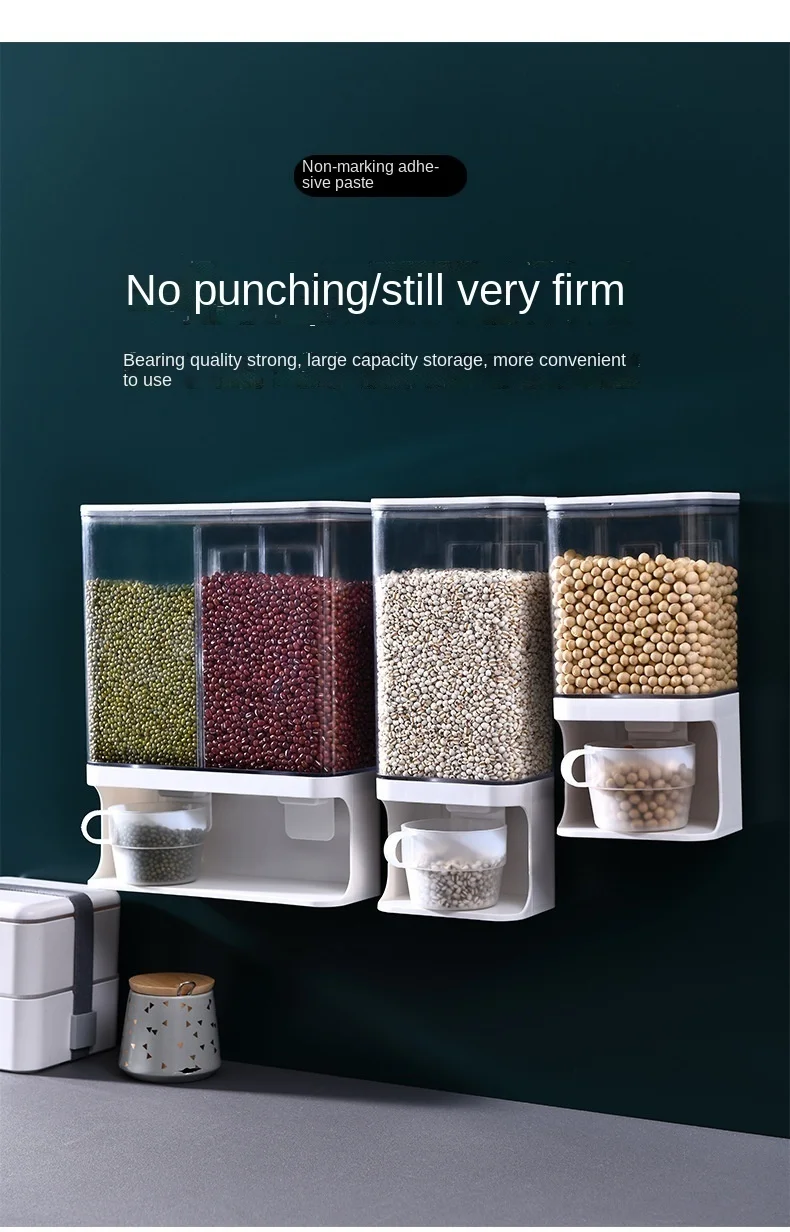 Настенный диспенсер для сухой пищи, удобные банки для хранения риса...