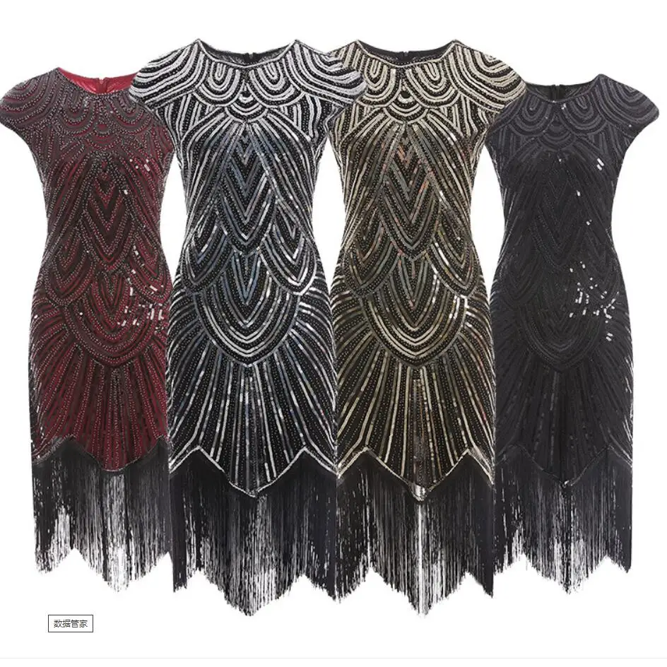 3XL женское платье в стиле 1920-х годов, винтажное платье в стиле Великий Гэтсби, вечерние платья, летние Украшенные миди-платья с бахромой