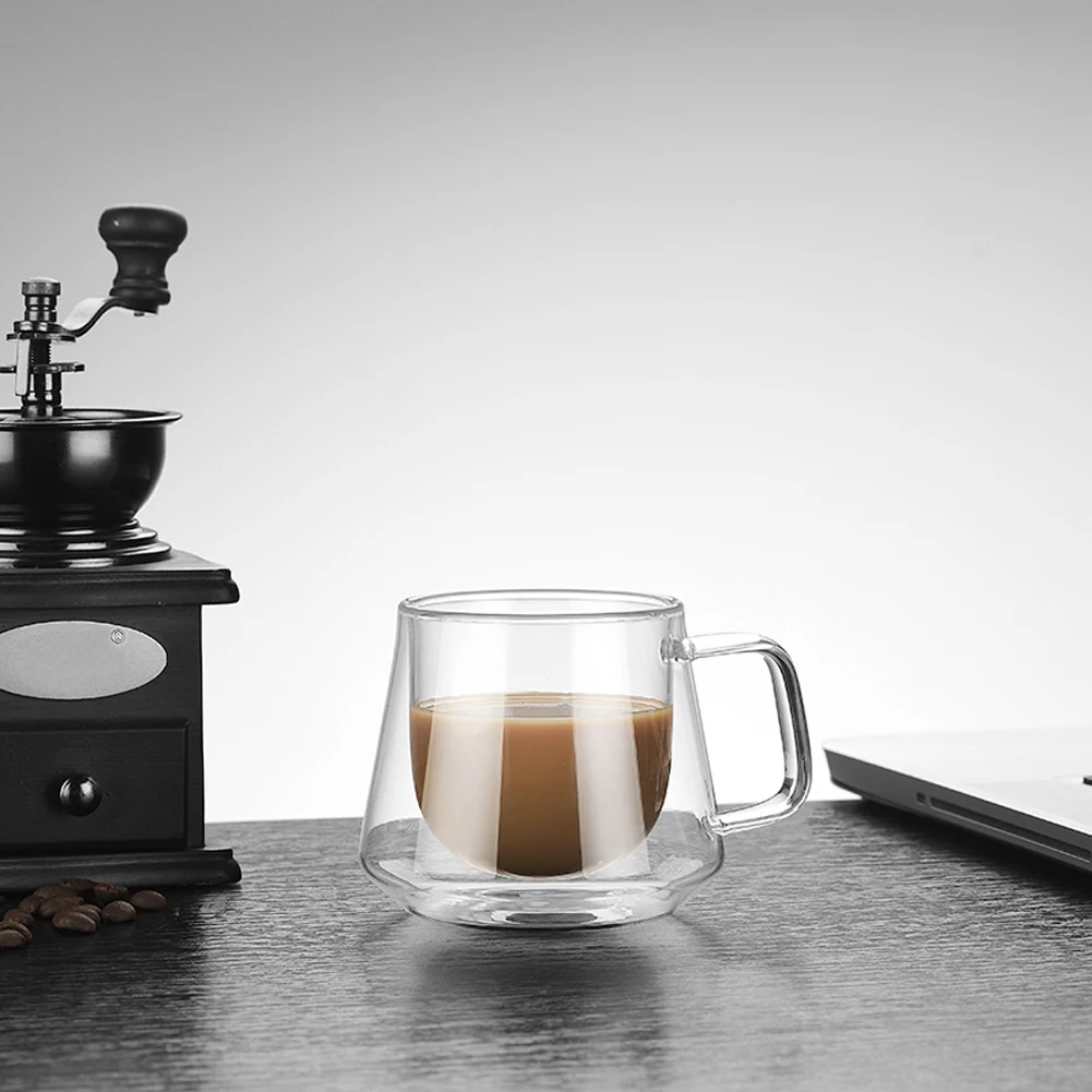 Двойные кофейные чашки с ручкой, зеркальная изоляция, стеклянная чашка с двойными стенками, подарочная посуда для напитков, кружки для молока, кофейная кружка, посуда для напитков