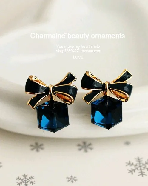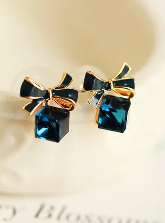Женские серьги-гвоздики с бантом, синие серьги-гвоздики с кристалла...
