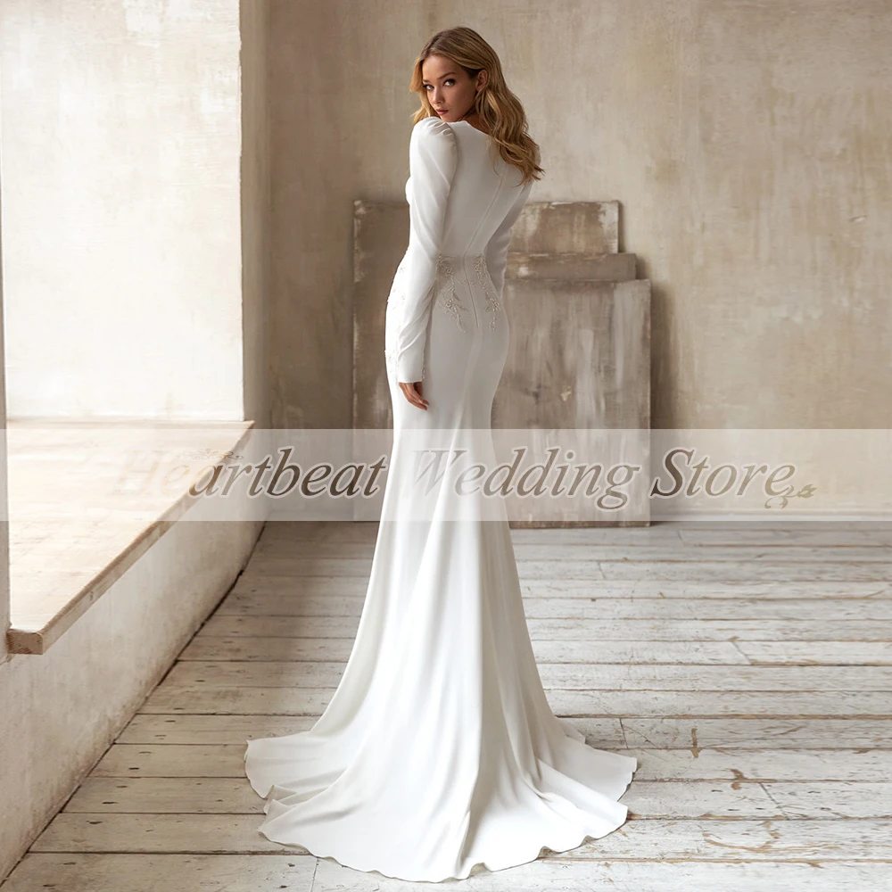 Простое белое свадебное платье с длинным рукавом, юбка-годе, 2022 с...