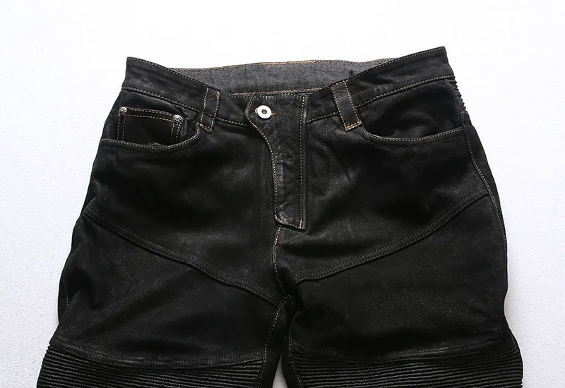 Мотоциклетные брюки из натуральной козьей кожи, винтажные стильные прочные замшевые брюки