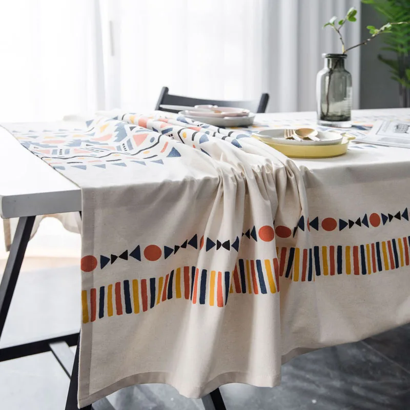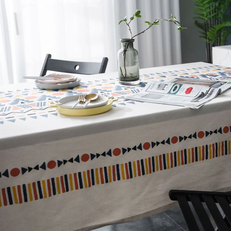 Скатерть разноцветная с геометрическим принтом, Пылезащитная ткань в богемном стиле для домашнего стола в гостиной