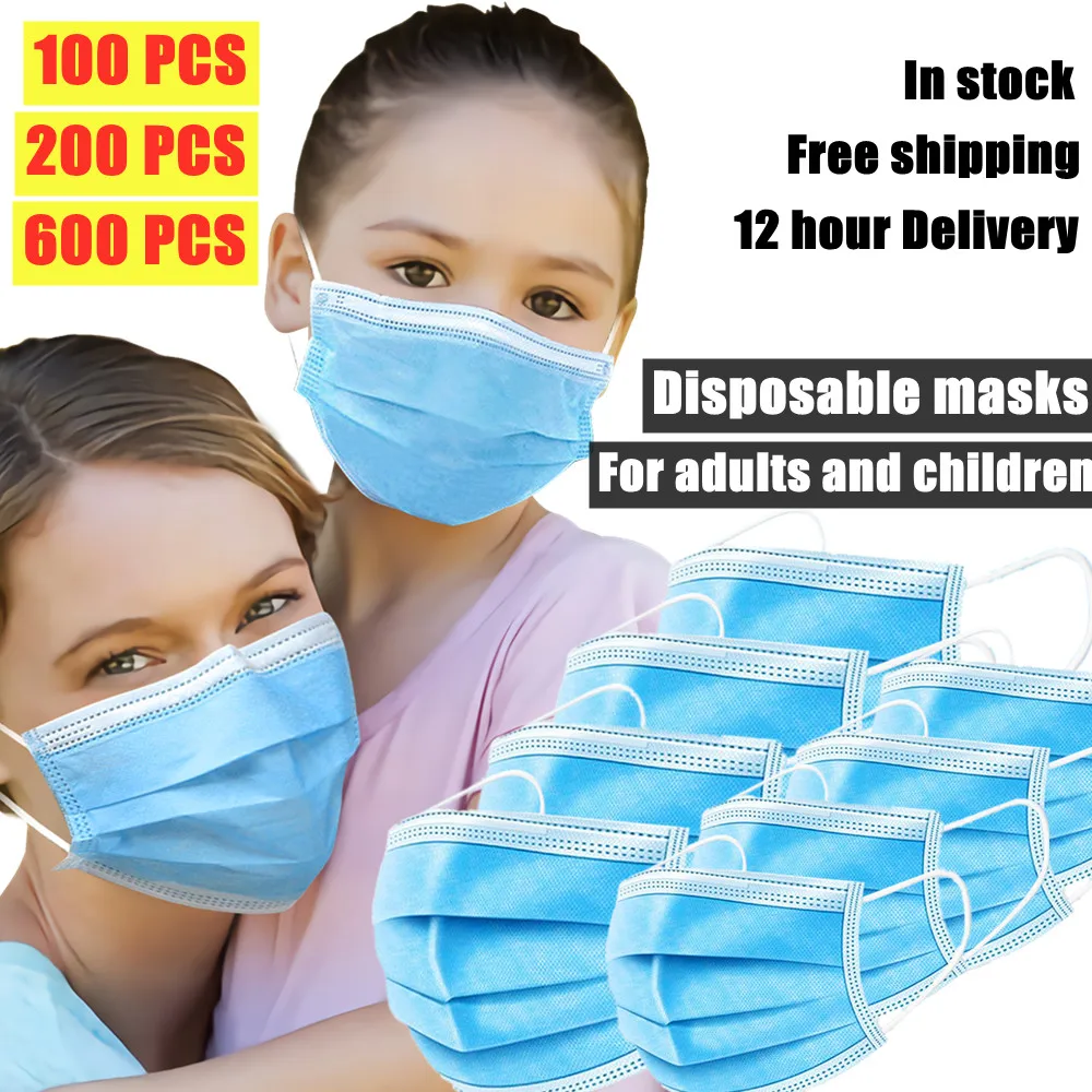 5-600 шт., одноразовые маски для лица, 3 слоя одноразовых маска 3 уровня для взрослых и детей