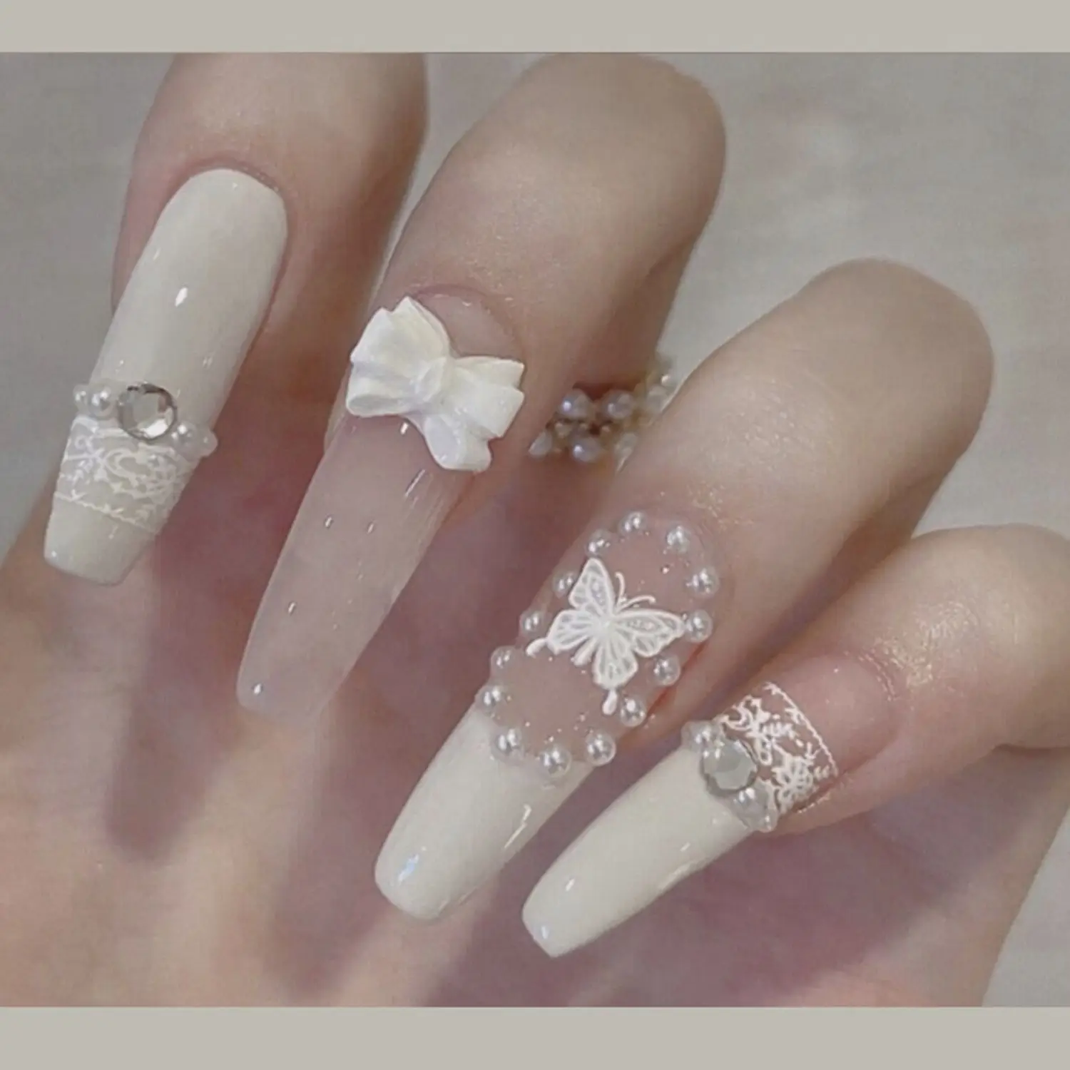 24 шт., накладные ногти с жемчугом, с 3d-бантом
