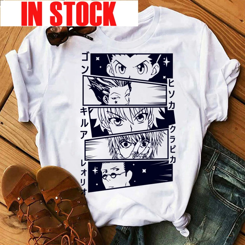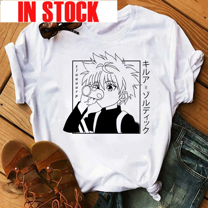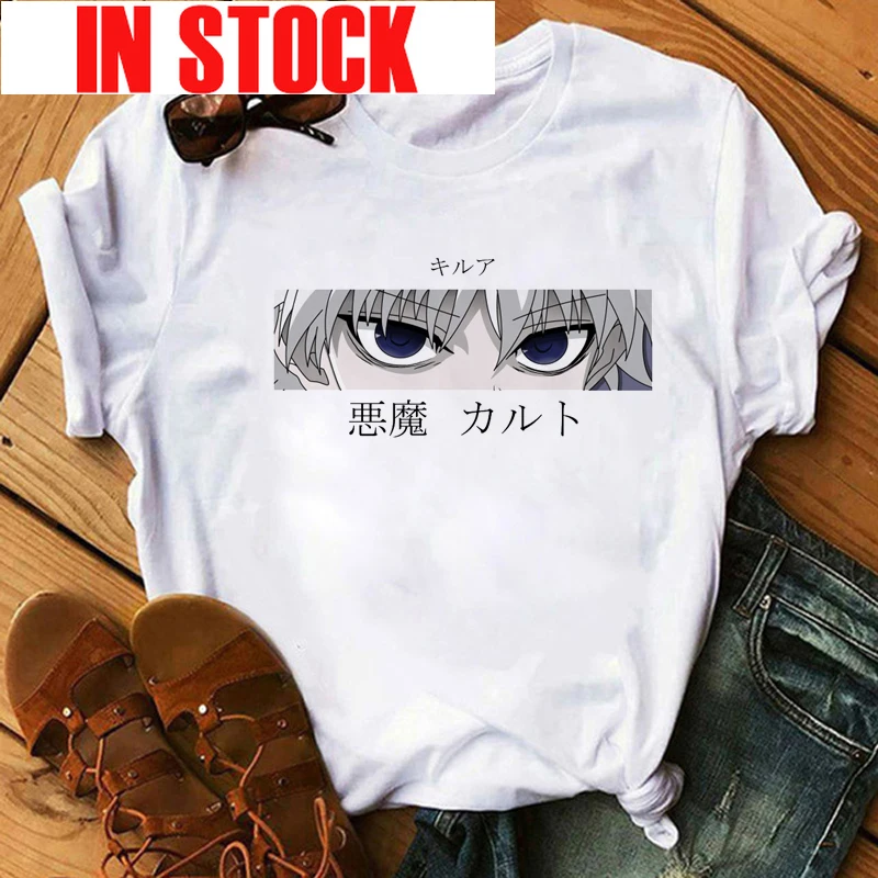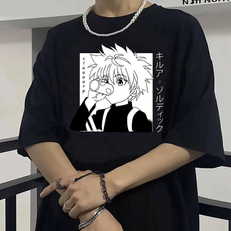 Футболка мужская с японским аниме Hunter X Hunter, милый мультяшный Готический Графический Топ в стиле Killua, топ с рисунком манга Харадзюку, унисекс